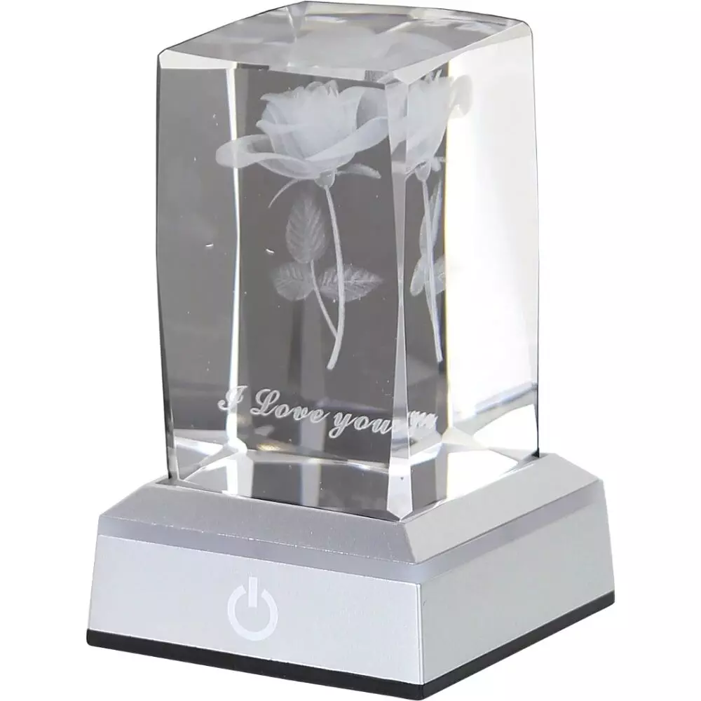 وردة ثلاثية الأبعاد محفورة بالليزر بتقنية متقدمة: هذه الوردة الجميلة محفورة بدقة باستخدام الليزر ثلاثي الأبعاد داخل كريستال نقي من عيار K9 عالي الجودة، مما يمنحها مظهرًا واقعيًا وجذابًا يدوم طويلاً. مع طباعة "I Love You"، تضفي لمسة رومانسية مميزة بتفاصيل دقيقة ومحاكية للطبيعة.إضاءة LED متعددة الألوان: قاعدة LED تأتي بستة أوضاع إضاءة متنوعة تشمل الأبيض، الأحمر، الأزرق، الأخضر، بالإضافة إلى وميض بطيء وسريع متعدد الألوان. يمكن للألوان التغير تلقائيًا لتضفي جمالًا وسحرًا خاصًا على الوردة الكريستالية في الظلام، مما يجعلها مثالية لتزيين المنزل أو المكتب أو غرفة النوم. تشغيل مرن عبر USB أو البطارية: يمكن تشغيل القاعدة باستخدام 3 بطاريات AAA أو عبر كابل USB (متوفر داخل العبوة)، مما يسهل استخدامها في أي مكان تريده. مفتاح التشغيل يعمل باللمس لتغيير الألوان بسهولة بضغطة واحدة.هدية أنيقة وفاخرة: كل وردة تأتي مغلفة بعناية في علبة هدايا فاخرة، وتشمل قطعة قماش للتنظيف، قاعدة LED، وكابل USB، لتكون هدية مثالية لشخص عزيز عليك في المناسبات الخاصة مثل أعياد الميلاد، حفلات التخرج، الذكرى السنوية، أو عيد الأم والأب. محتويات العبوة: تتضمن وردة كريستالية بأبعاد (3.19 × 2 إنش)، قاعدة إضاءة LED (2.7 × 1.2 إنش)، كابل USB، وصندوق هدايا فاخر. (يرجى ملاحظة أن البطاريات غير مشمولة).هذا المنتج يجمع بين الجمال والتقنية، ليكون هدية فريدة تضيف لمسة من الأناقة والتميز لأي مكان.