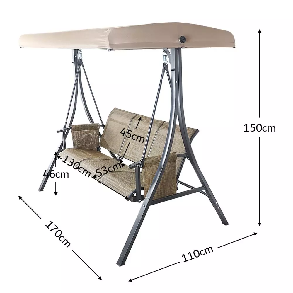 أنت تراجع:أرجوحة للحديقة بثلاثة مقاعد مع مظلة سونا - بيج