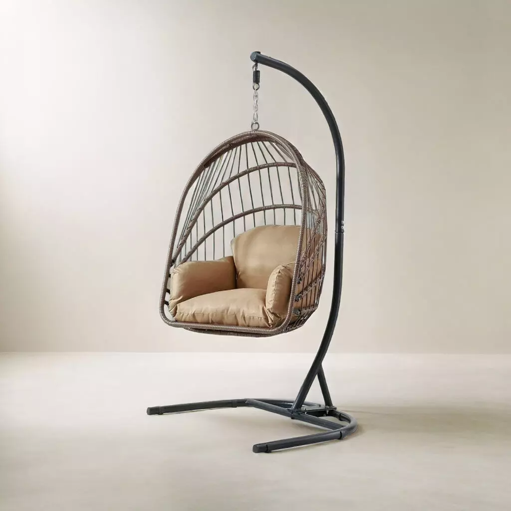لتستمتع بأجمل أوقات الراحة والاسترخاء نقدم لكم هذه االأرجوحة المزودة بحامل معدني متين ومميز بتحمله للأوزان، كما تم إضافة مجموعة من الوسائد للمقعد ومسند الظهر والأذرع لتوفير أعلى درجات الراحة أثناء الجلوس، تتميز هذه الأرجوحة بتصميم قابل للطي ليسهل نقلها وتخزينها دون أن تشغل مساحة كبيرة.