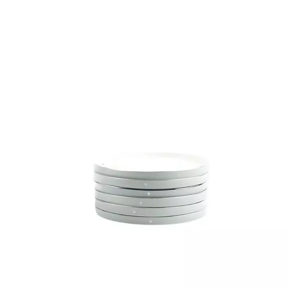 يحتوي الطقم على 6 أطباق كبيرة الحجم لتناسب الضيافة، مزخرفة بخط فضي اللون تحديداََ من على حواف الطبق، تأخذ الأطباق شكل دائري مع عمق بسيط و حواف مرتفعة قليلاََ، مصنوعة من مادة عالية الجودة لكي تتحمل الاستخدام لفترة طويلة من الزمن.