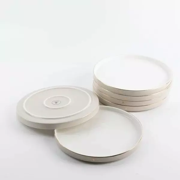 يحتوي الطقم على 6 أطباق كبيرة الحجم لتناسب الضيافة، مزخرفة بخط فضي اللون تحديداََ من على حواف الطبق، تأخذ الأطباق شكل دائري مع عمق بسيط و حواف مرتفعة قليلاََ، مصنوعة من مادة عالية الجودة لكي تتحمل الاستخدام لفترة طويلة من الزمن.