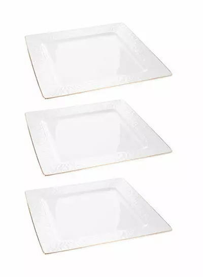 أطباق عشاء مربعة من 3 قطع أبيض ذهبي 12 بوصة