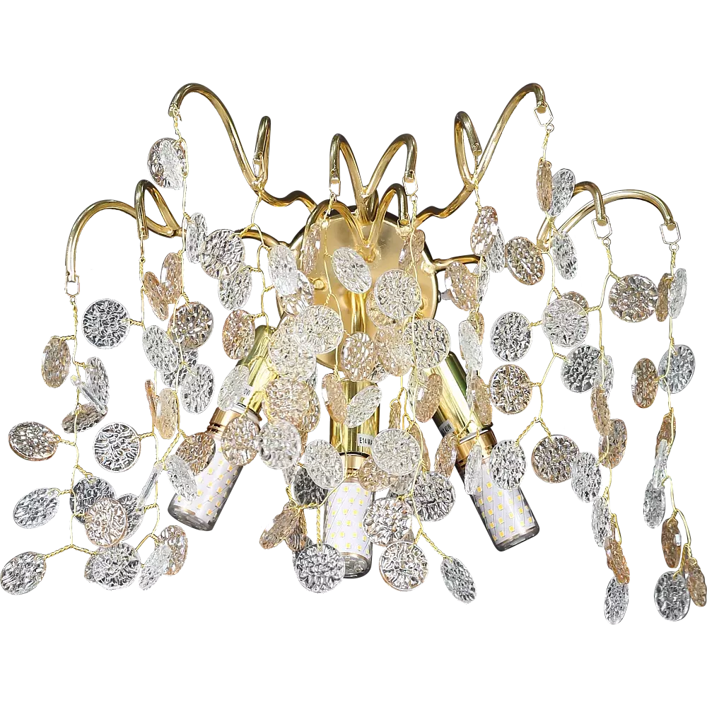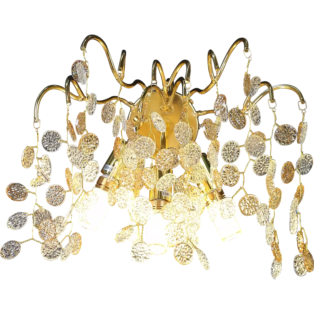إضاءة جدارية مودرن لونا اجعل منزلك يبدو مذهلاً مع ثريات ونجف المتميزة, لون الانارة: مصباح تركيب, مقاس قاعدة الانارة: E14, عدد اللمبات المقترحة للمنتج: 3, نوع الإضاءة: هذا المنتج لا يحتوي على مصباح, نوع التركيب: مثبت على الحائط, لون الغطاء: ذهبي لون غطاء اللمبة: ذهبي