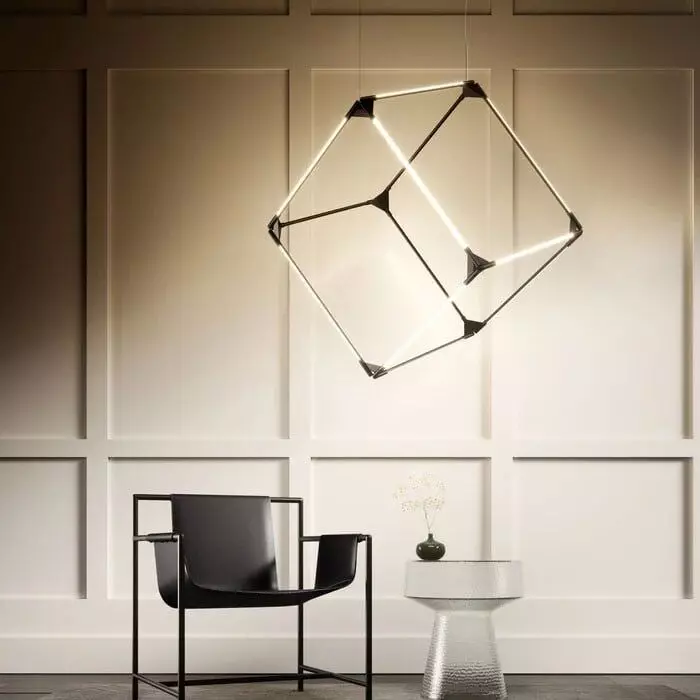 ثريا علاقي مكعب إنارة باللون الأسود 60 واط ورملايت : 3000K تعمل على إضفاء جو من الدفء والراحة في المساحة التي توضع فيها تعمل هذه المصابيح على توزيع الضوء بشكل متساوٍ في جميع الاتجاهات، مما يخلق أجواء مريحة ومنعشة .