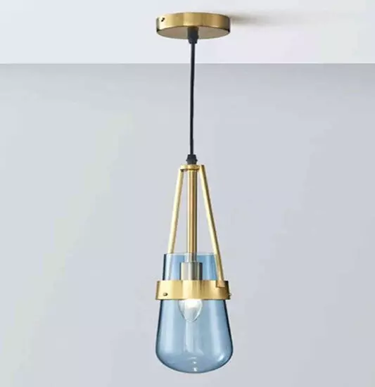 • لذلك نقدم لك اليوم إضاءة معلقة مودرن الزجاج الأزرق والمعدن الذهبى، تناسب غرف الاستقبال، كما تتناسب مع زوايا الغرف وفوق المغاسل.