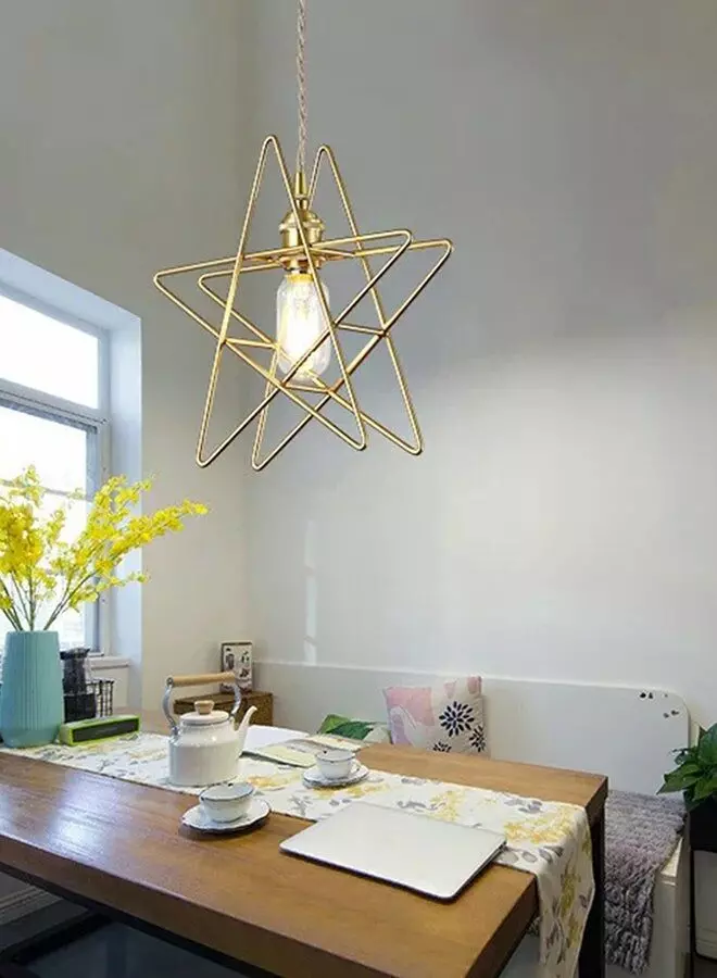 ثريا عصرية ومصممة يدوياً على شكل نجمة كلا قاعدة السقف والسلاسل مصنوعة من النحاس والسبائك والمعدن الصلب حبل بطول 55 بوصة قابل للتعديل يسمح لك بضبطه إلى أي ارتفاع تريده