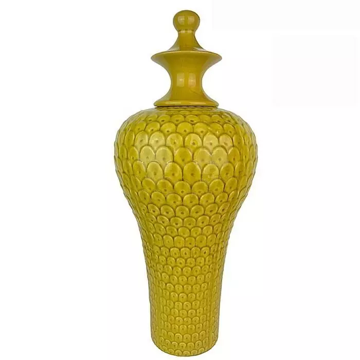 تحفة ديكور شكل جرة بلون الخردل مصنوعة من السيراميك. المقاس- 26.5*26.5*63 سم