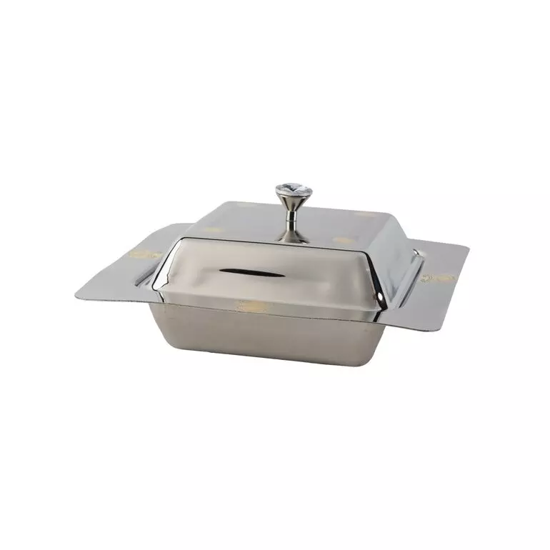 طبق تمرية مصنوعة من الستانلس ستيل, تستخدم في تقديم التمور والمكسرات والحلويات التقليدية في المناسبات الخاصة والإحتفالات العائلية, قطعة بسيطة وعملية تضيف لمسة من الأناقة والرقي على أي مناسبة .