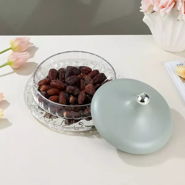 تمرية كبيرة زجاج من جوار - اخضر وفضي