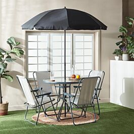 مقاسات الكرسي: الارتفاع: 72 سم - العرض: 50 سم - العمق: 61 سم مقاس الطاولة: الارتفاع: 70 سم - القطر: 60 سم |
