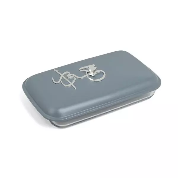 حافظة تقديم طعام كبيرة من جوار - ازرق وفضي