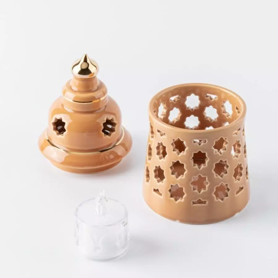يتميز حامل الشموع بالبطاريه بشكل آسر تتميز بالزخارف الشرقية البارزه ، بتصميم يتناسب مع جميع المناسبات ، مما يضيف لمسة من الرقي إلى ديكورات المنزل . تصميمها يجعلها مثالية لتزيين الطاولات أو الأرفف أو كقطعة مركزية تلفت الأنظار . تقدم كهدية للعائلة والأصدقاء ، مما يجلب البهجة والأجواء السعيده إلى منازلهم وجلساتهم.