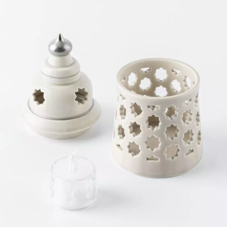 يتميز حامل الشموع بالبطاريه بشكل آسر تتميز بالزخارف الشرقية البارزه ، بتصميم يتناسب مع جميع المناسبات ، مما يضيف لمسة من الرقي إلى ديكورات المنزل . تصميمها يجعلها مثالية لتزيين الطاولات أو الأرفف أو كقطعة مركزية تلفت الأنظار . تقدم كهدية للعائلة والأصدقاء ، مما يجلب البهجة والأجواء السعيده إلى منازلهم وجلساتهم.