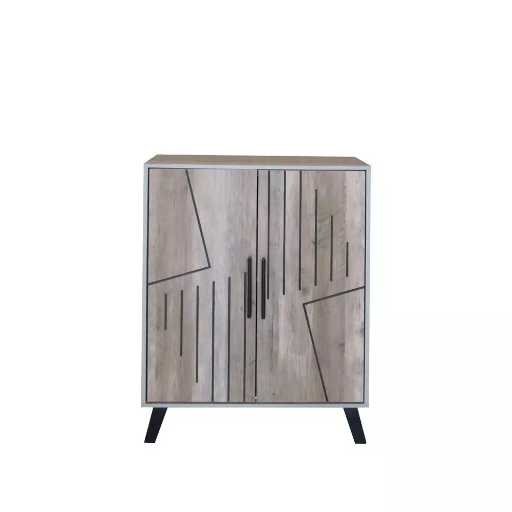 خزانة أحذية بابين خشب ماليزي أولغا - خشبي ورمادي