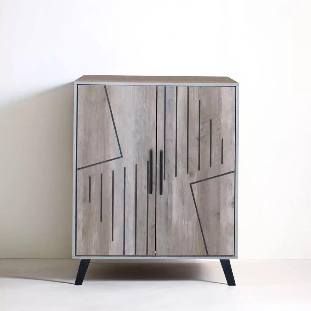 خزانة أحذية بابين خشب ماليزي روما - رمادي وخشبي