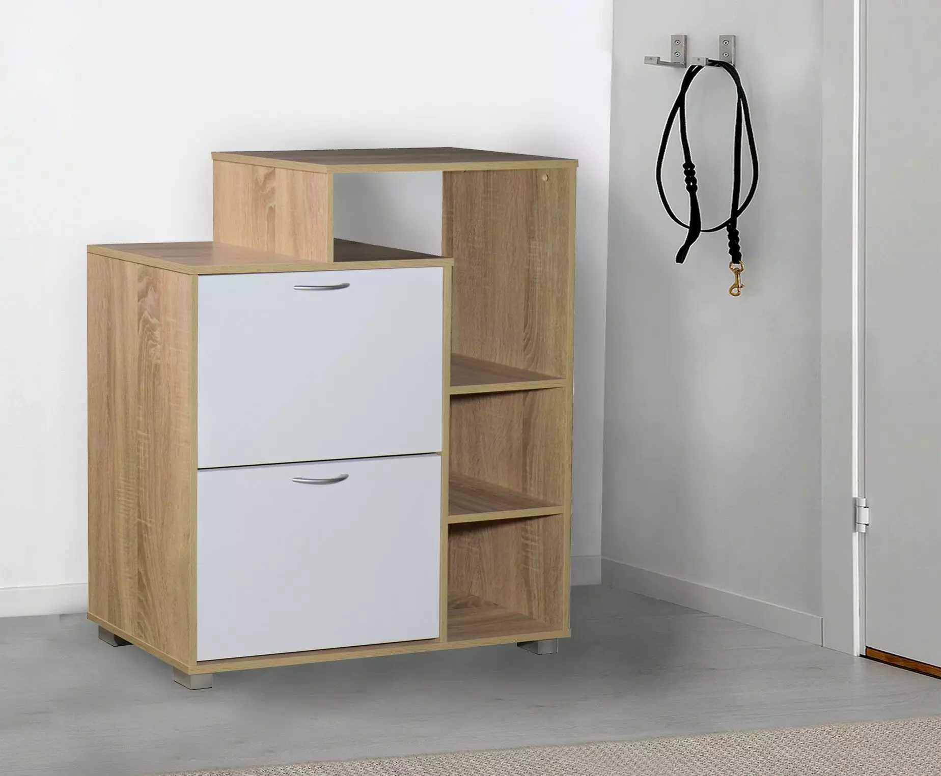 خزانة أحذية دورين مع رفوف خارجية فلينسيا - لون خشبي وأبيض