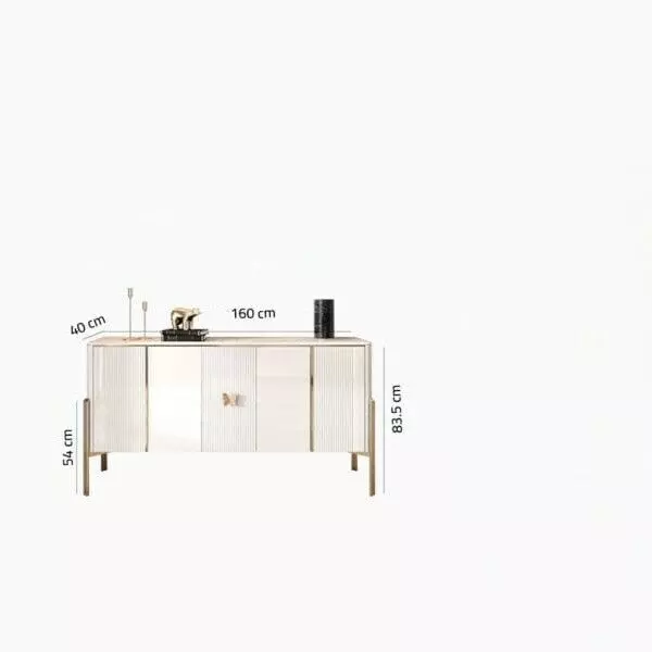 | مقاسات الخزانة الجانبية | الارتفاع 83.5 سم * ارتفاع القوائم 54 سم * العمق 40 سم * العرض 160 سم |