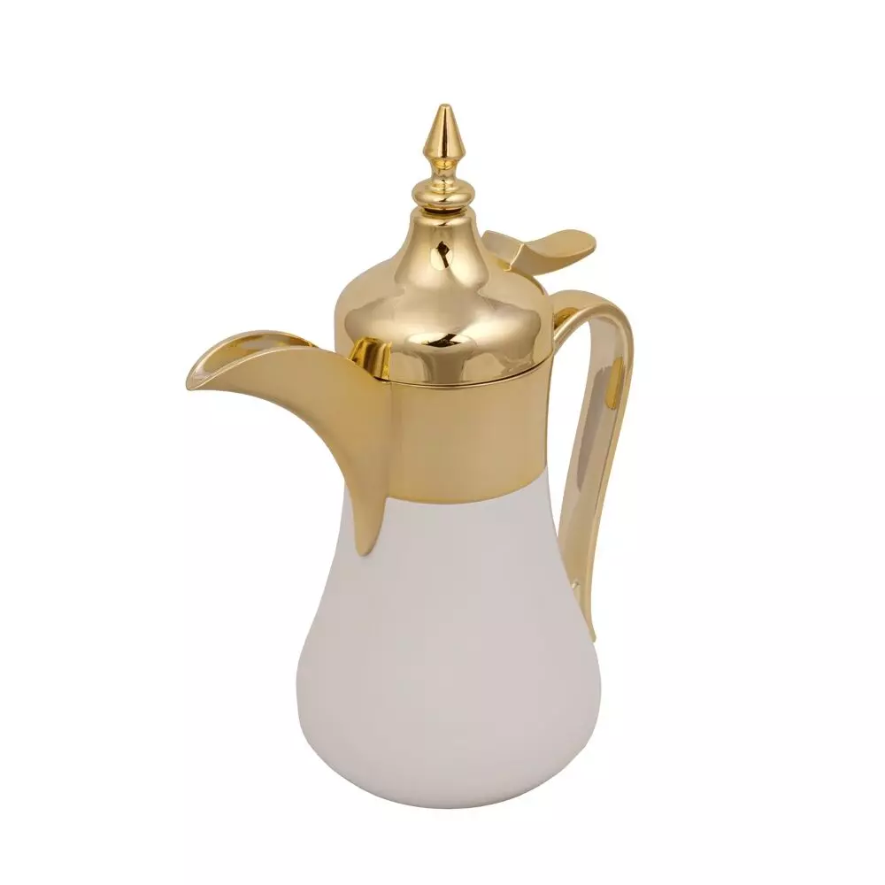 دلة قهوة عربية باللون الذهبي بسعة 0.35 لتر، تمنح تقديم القهوة لمسة تقليدية وفاخرة. تحافظ على حرارة القهوة لفترة طويلة، مما يجعلها مثالية للمناسبات.