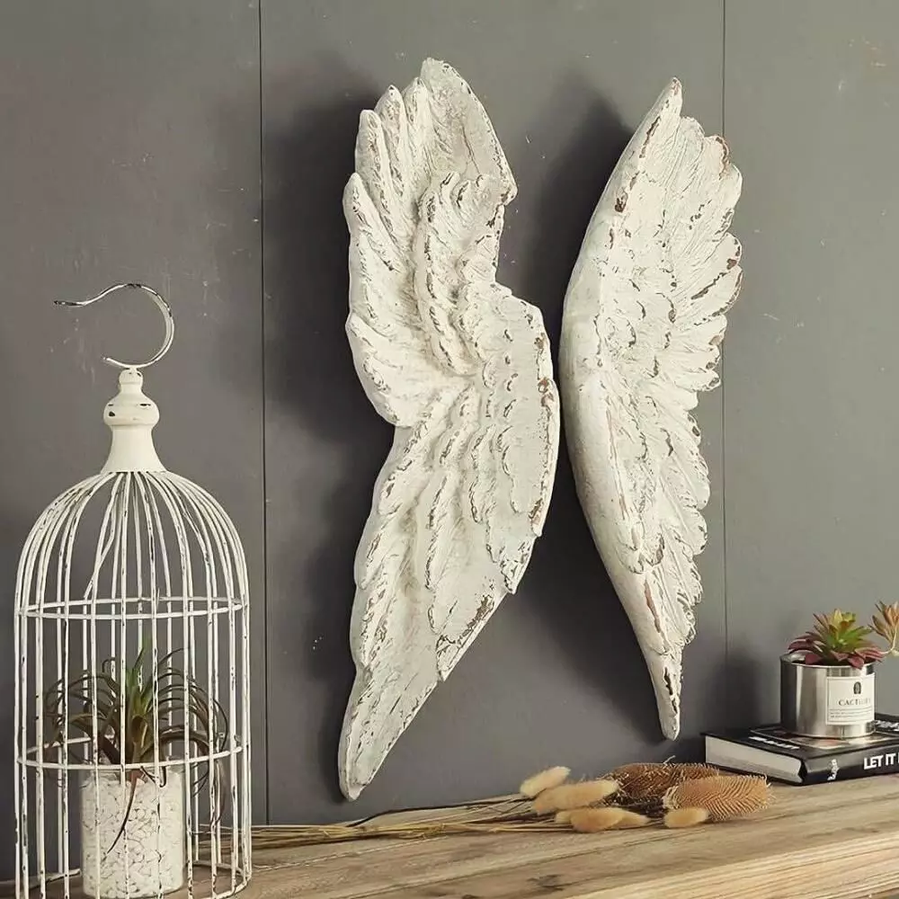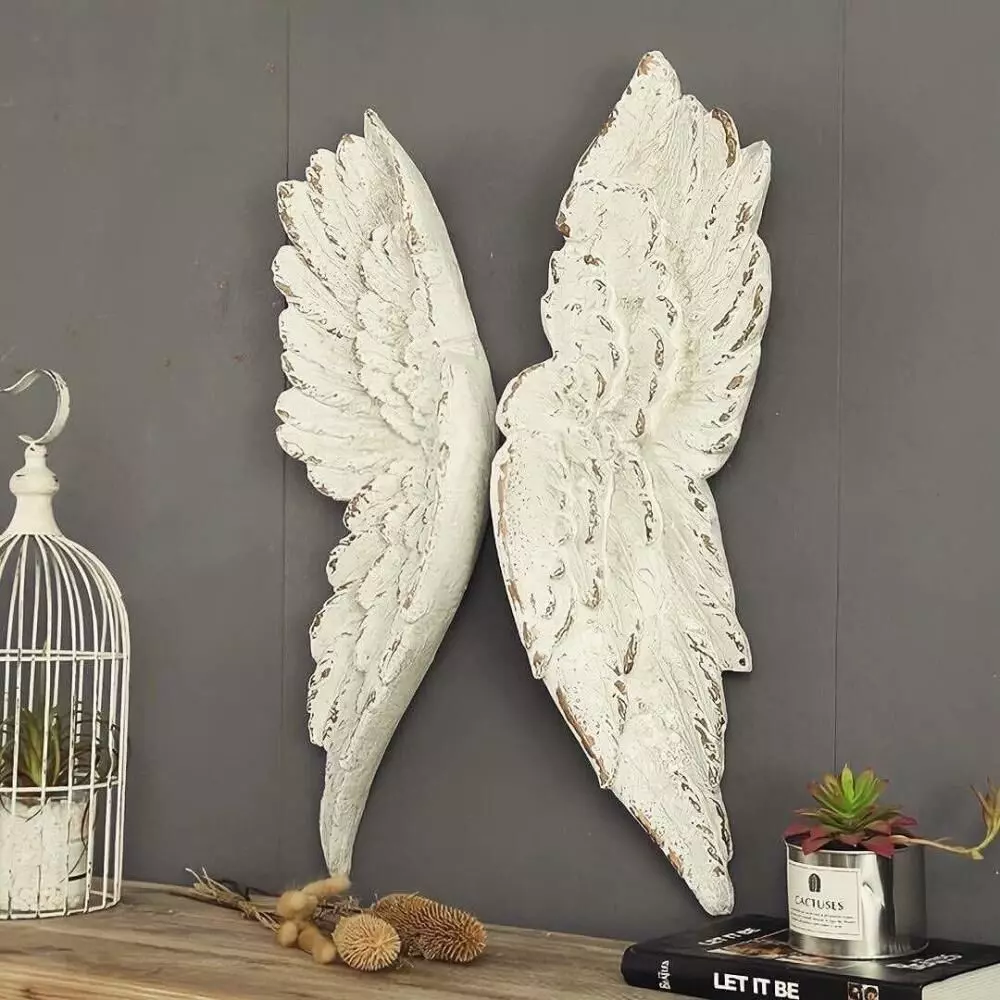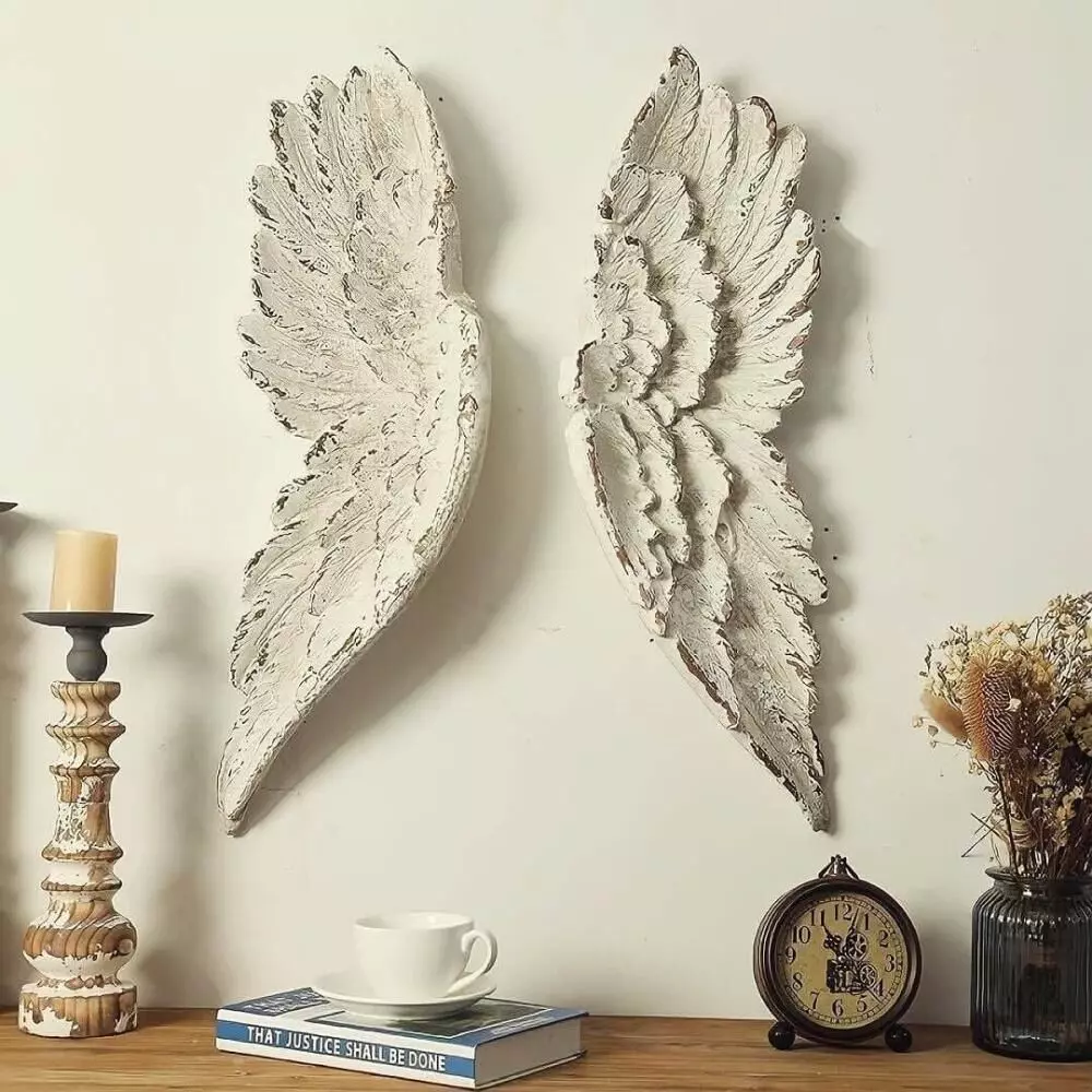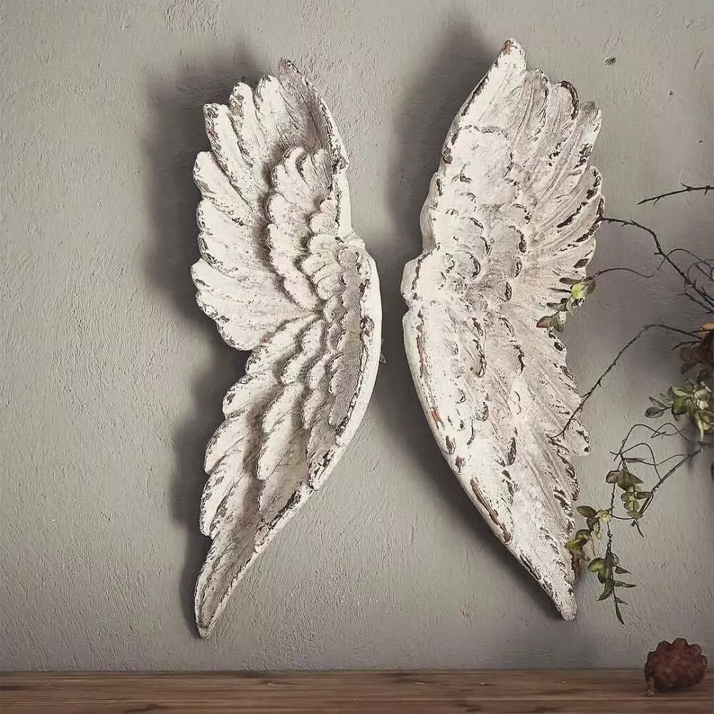 ديكور جداري قطعتين شكل جناح جبس نحت جميل ومميز يضفي لمسة جمال ورقي