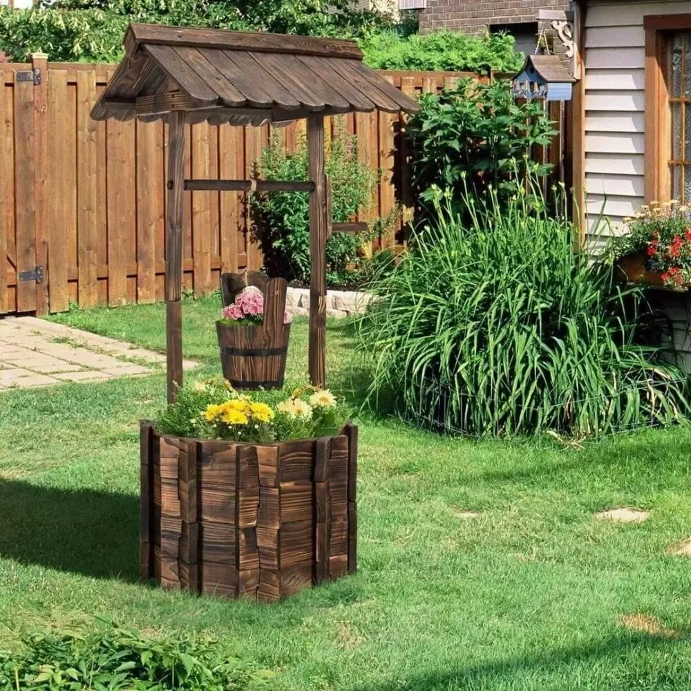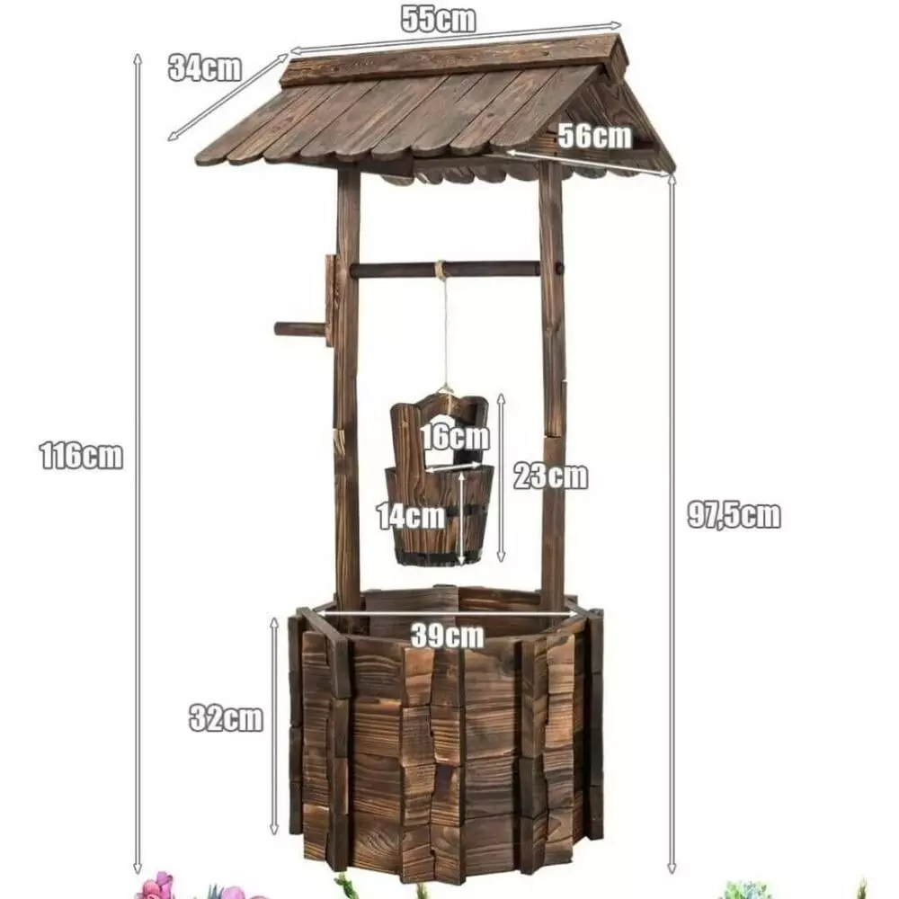 ديكور بئر خشبي بتصميم ريفي مميز يُضفي لمسة جمالية وطابعاً طبيعياً على أي مساحة، سواء داخلية أو خارجية. مصنوع من الخشب الطبيعي بتفاصيل دقيقة، يمكن استخدامه كعنصر ديكوري في الحدائق، الكافيهات، المطاعم، الشاليهات، أو المنتجعات السياحية . يمكن تزيينه بالنباتات أو الزهور لتعزيز جمال المكان، ويتميز بتحمله لعوامل الطقس مما يجعله خياراً مثالياً للاستخدام الخارجي، كما يضيف دفئاً وأناقة للأماكن الداخلية.