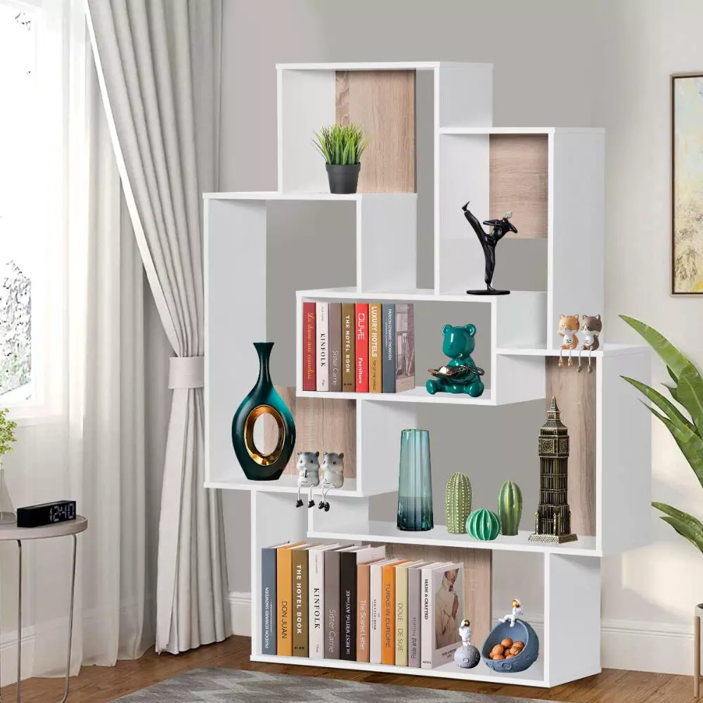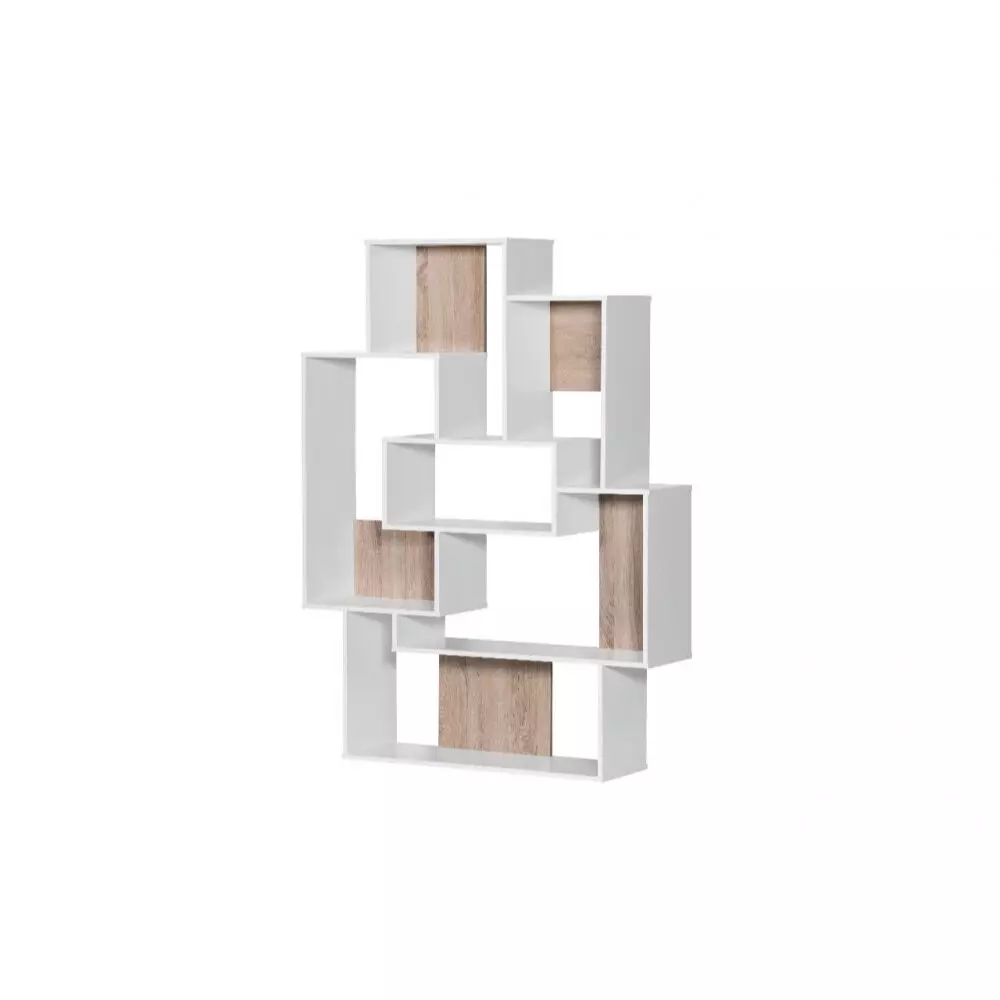 رفوف مكتبة تصميم مفتوح خشب ماليزي كلوديا - أبيض وبني خشبي