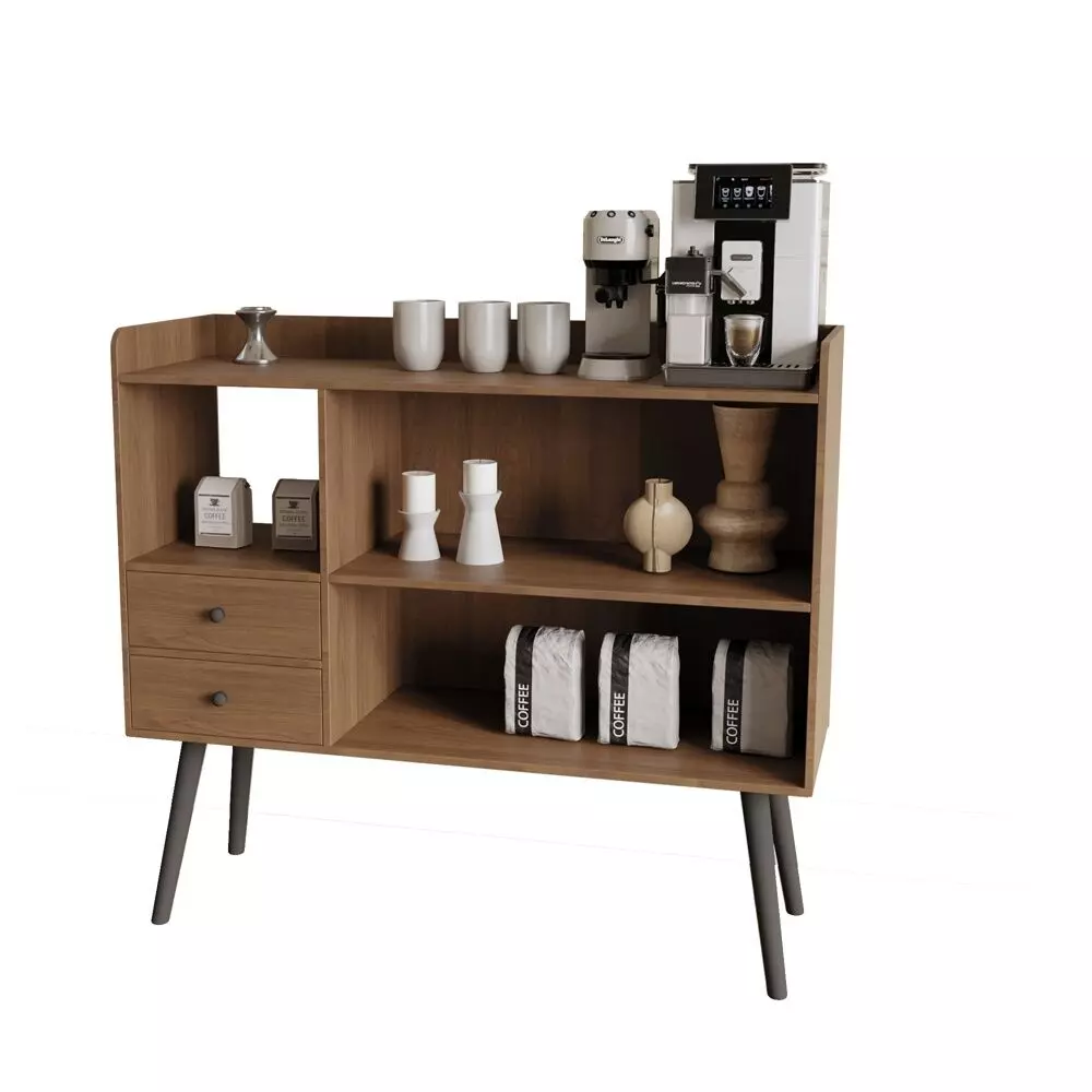 أرجل الطاولة مصنوعة من خشب الزان عالي الجودة ولوح MDF لضمان مظهر أنيق، كما تتميز خزانة القهوة بقدرة تحمل ممتازة وثبات ممتاز، ما يجعلها مثالية للاستخدام بثقة.