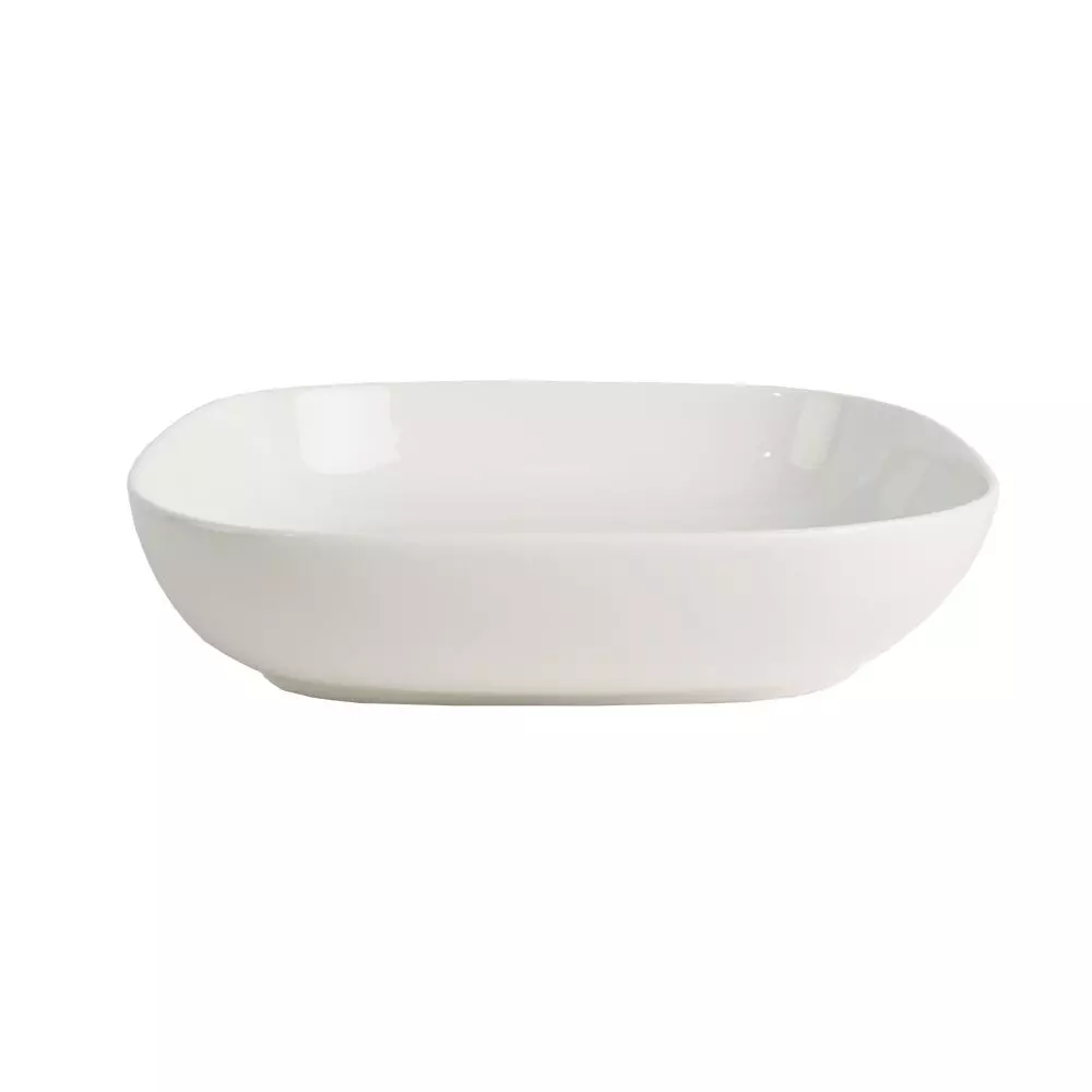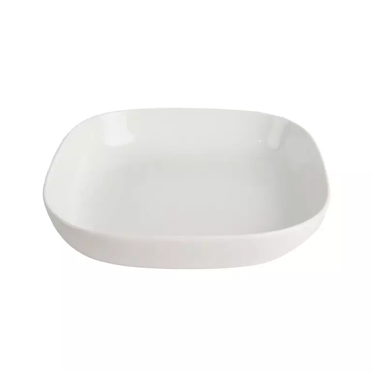 زبدية مستطيلة الشكل مصنوعة من البورسلان باللون الأبيض ذو عمق مناسب لإحتواء مختلف الأصناف, تعتبر إختيار مثالي لتقديم وتنسيق الأطعمة بشكل جميل ومنظم.