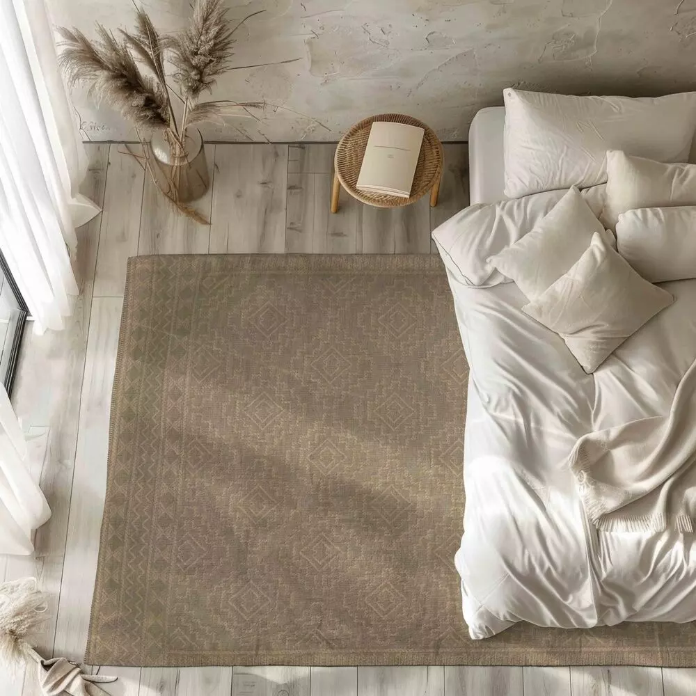 سجاد سراب، سجاد كلاسيك، سجاد تركي، تصميم باللون البيج الفاخر، أشكال هندسية تضفي لمسة من الكلاسيكة المميزة لمساحاتك، مُصنع من الجوت الرائع الذي يقدم لك ملمس مميز، جودة أعلى وعمر أطول