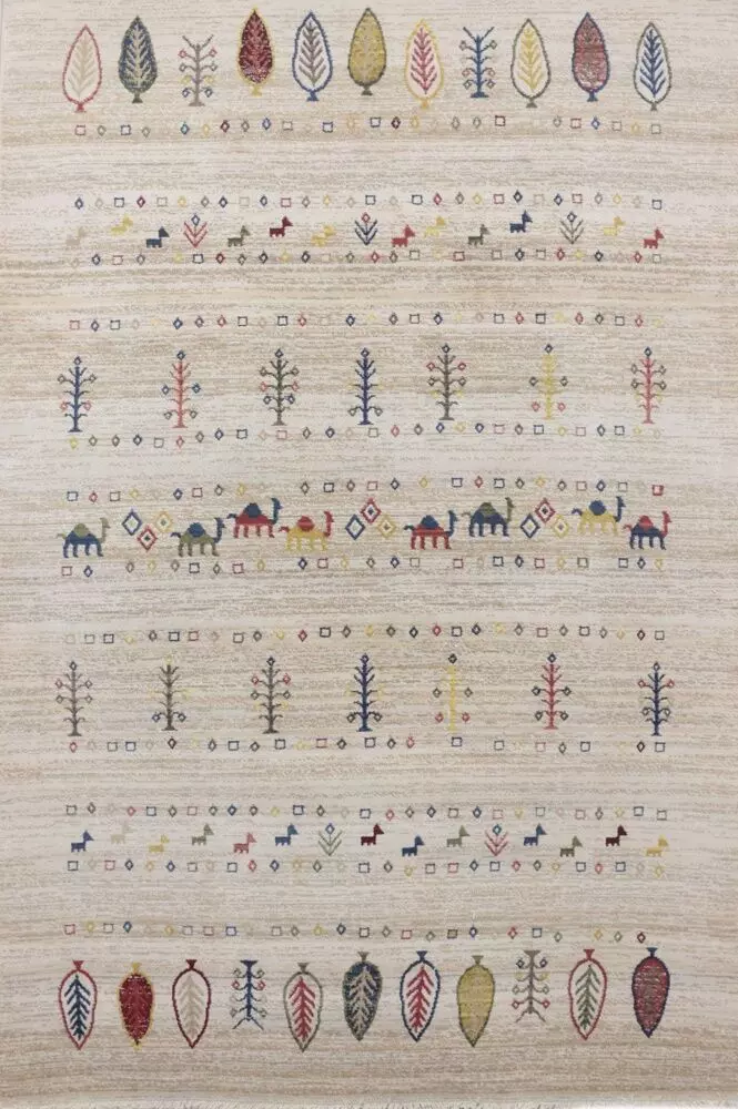 سجادة شينزو 200x300 سم حياكة يدوية - بيج ومتعدد الالوان