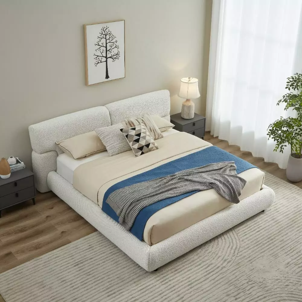 سرير كينغ بوكليه منجد - باللون البيج الفاتح