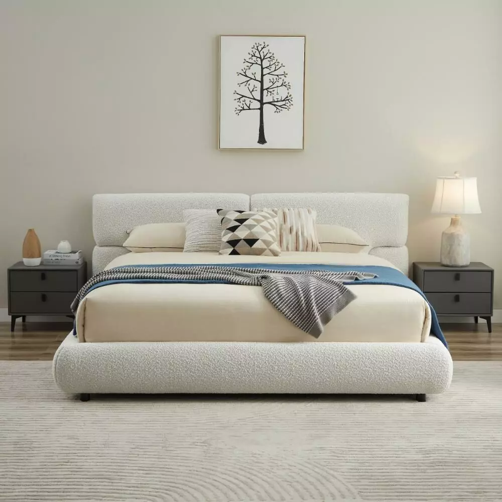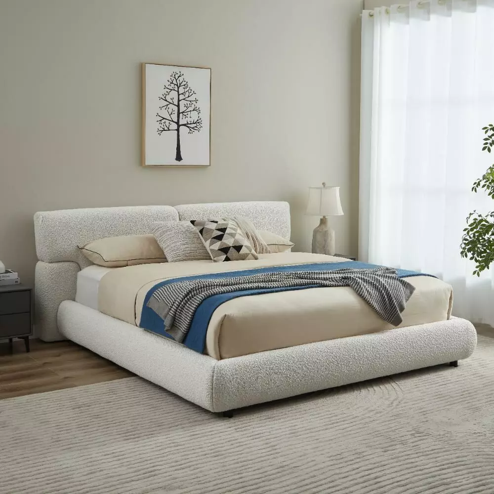 تصميم مريح بانحناءات ناعمة في ظهر السرير لإحساس بالاحتضان والراحة قاعدة قوية بشرائح خشبية مرنة لدعم ممتاز للمرتبة وتهوية مثالية تنجيد كامل من جميع الجوانب بلمسة أنيقة فاخرة مناسب لغرف النوم الرئيسية أو غرف الضيوف الفاخرة لون محايد يسهل دمجه مع جميع قطع الآثاث في غرفة نومك