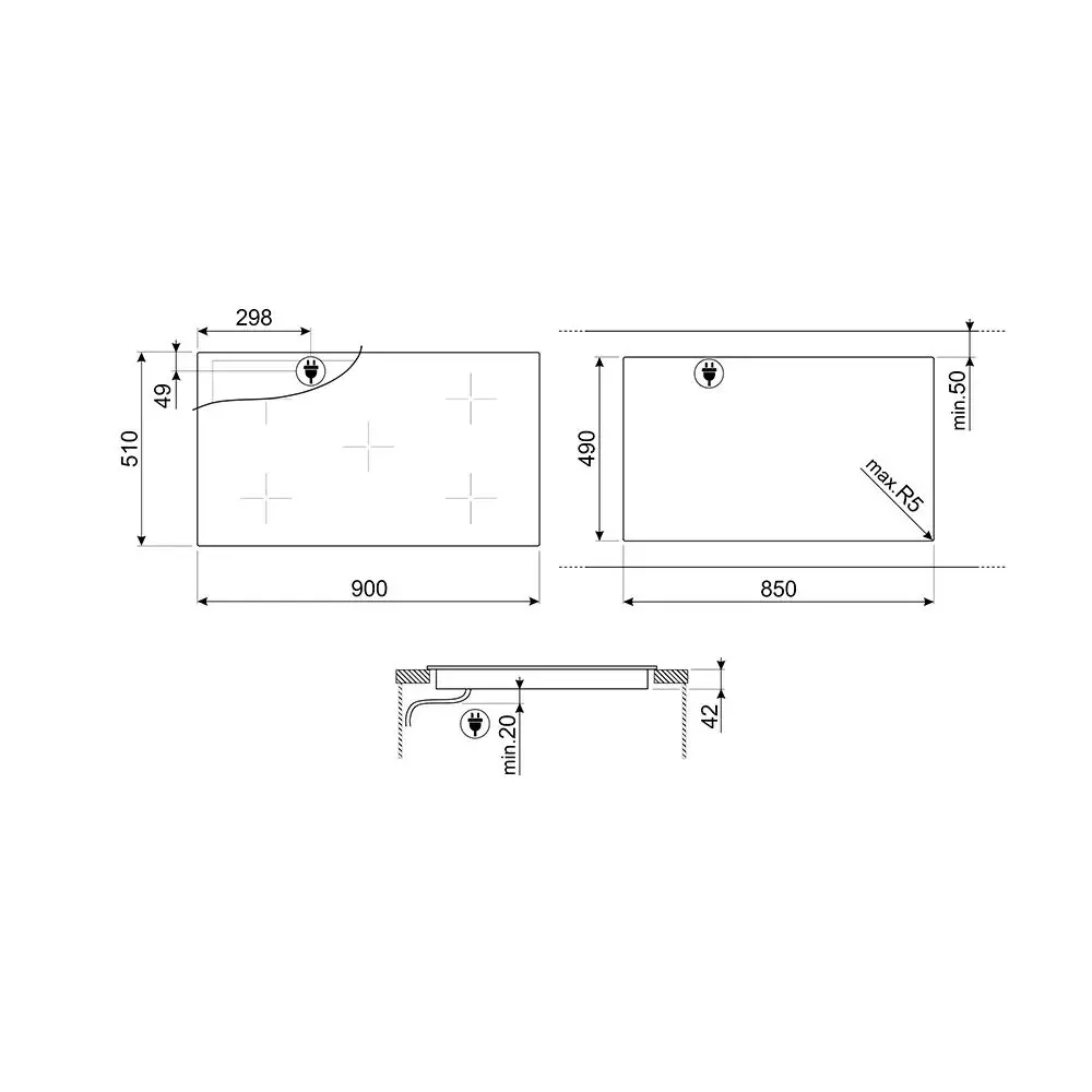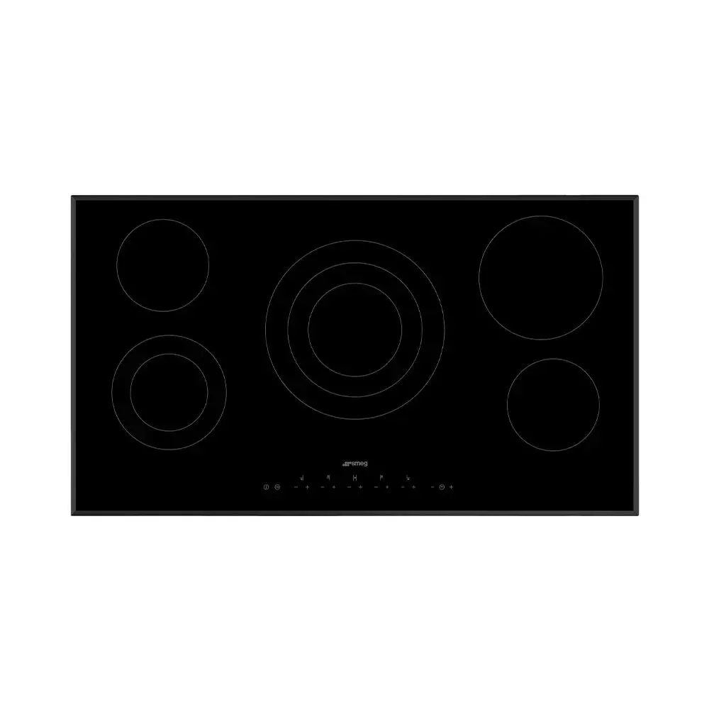 سطح كهربائي سميج 90 سم سيراميك مدمج -بلت ان-. 5 اماكن للطهي -عيون- عالية الإضاءة. زجاج سيراميك أسود. عدد 9 مستويات للطاقة. انذار صوتي عند نهاية الطهي. خاصية التسخين السريع. وظيفة إبقاء التدفئة التلقائية. مؤشرات الحرارة المتبقية. التقنية الإقتصادية مع خيار توفير الطاقة. قفل لسلامة الأطفال. تقنية السلامة عند الخفض التدريجي للحرارة تلقائياً. العيون الأمامية اليسرى المزدوجة: 2.00 كيلو واط. العين اليسار الخلفية: 1.20 كيلو واط. عين في المركز: 2.70 كيلو واط. العين اليمين الخلفية: 2.00 كيلو واط. العين اليمين الأمامية: 1.20 كيلو واط. طريقة التحكم: باللمس عدد مستويات الطاقة: 9 عدد الشعلات: 5
