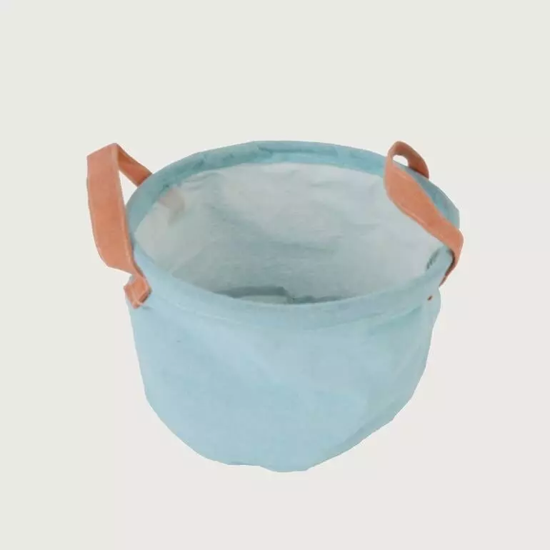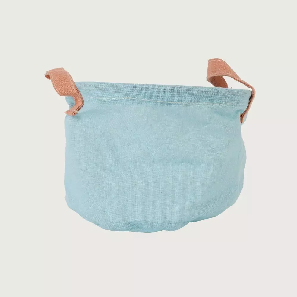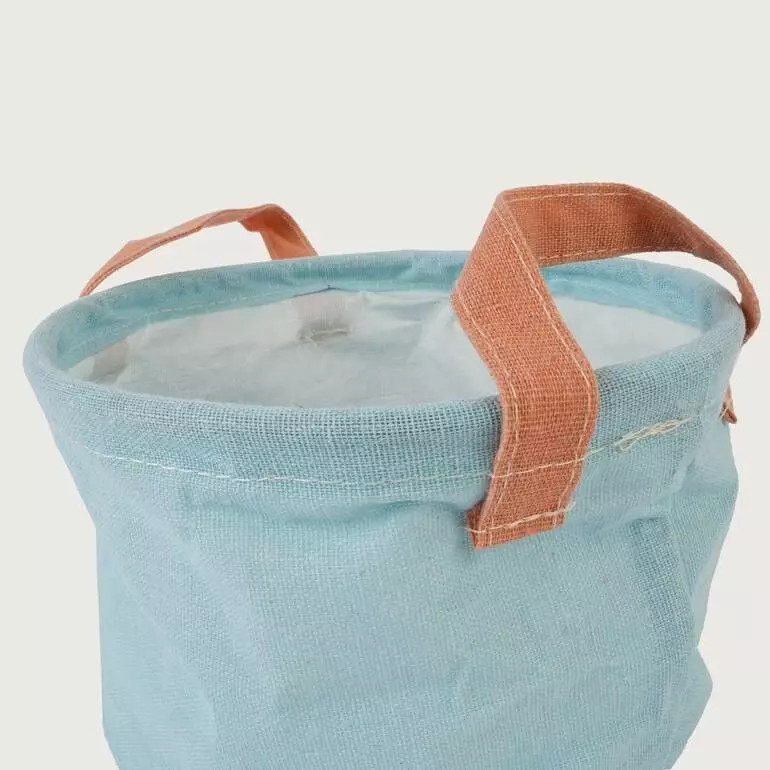 سلة مصنوعة من القماش باللون الأزرق الفاتح بمقبض لتمكين حملها ونقلها بسهولة, مفيدة وعملية للتنظيم و للتخزين الأشياء بسهولة.