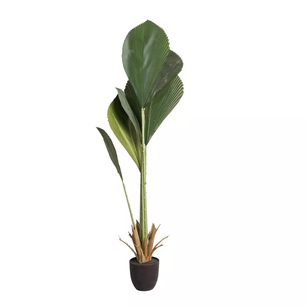 طول شجرة نخيل ليكوالا صناعية تضفي لمسة استوائية أنيقة على الديكور الداخلي. تتميز بأوراقها العريضة التي تمنح المكان مظهرًا طبيعيًا دون الحاجة للصيانة.