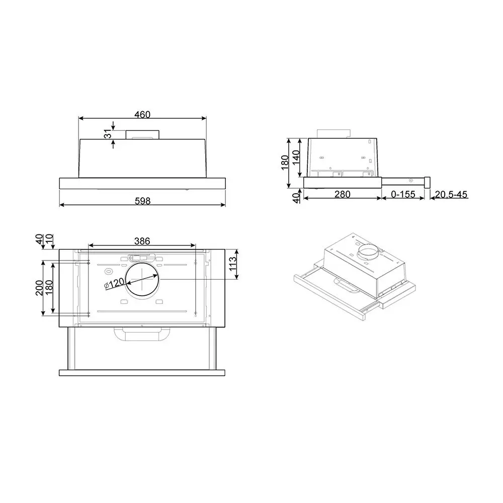 شفاط سميج مدمج - بلت ان - شبه متكامل داخل كابينه قوة شفط 304 متر مكعب - ساعة - فضي