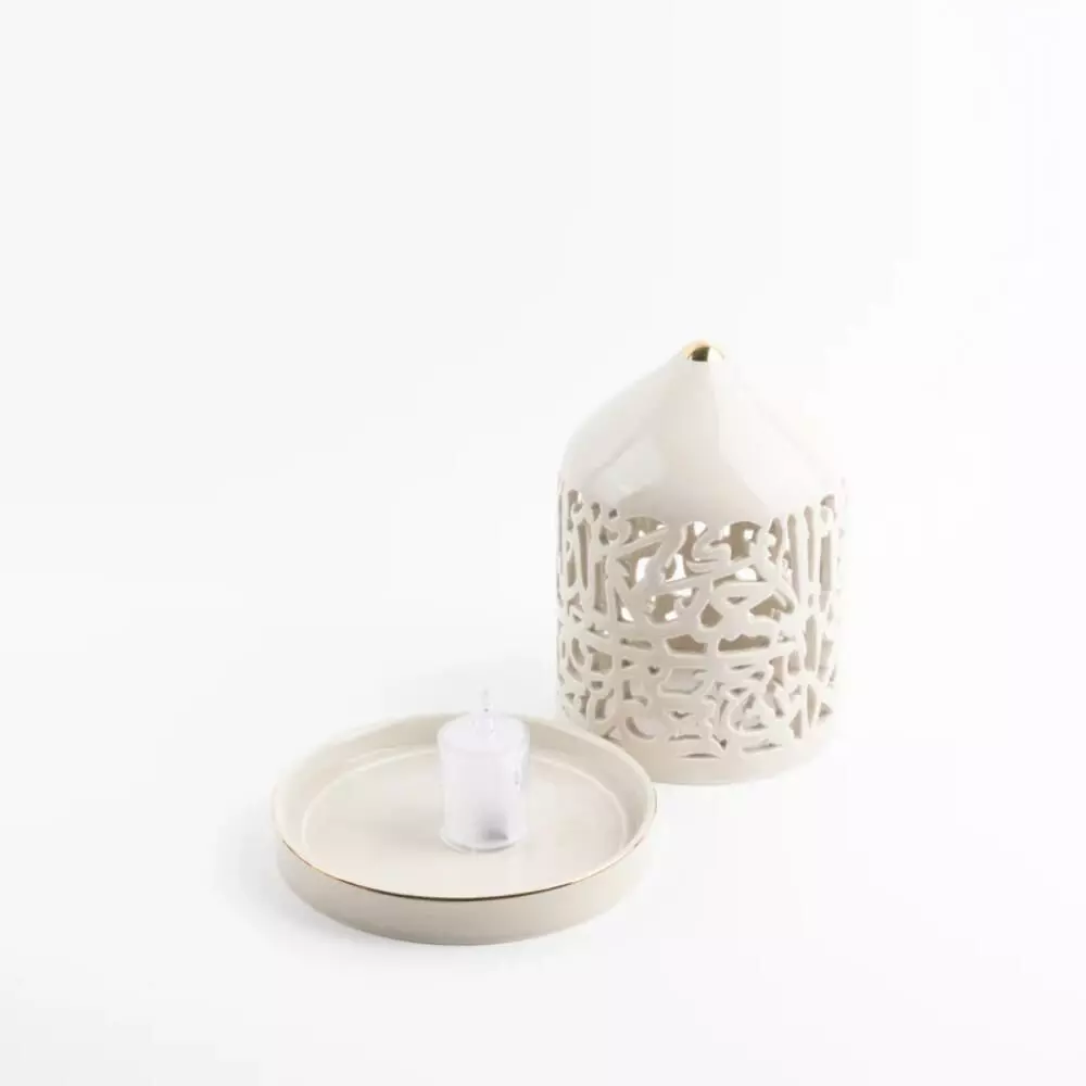 مصنوع من البورسلان مما يمنحه مظهراً راقياً ومتناغماً مع مختلف الديكورات، بتفاصيل مفرغة مما يسمح بانتشار الضوء بشكل جميل عند تشغيله.