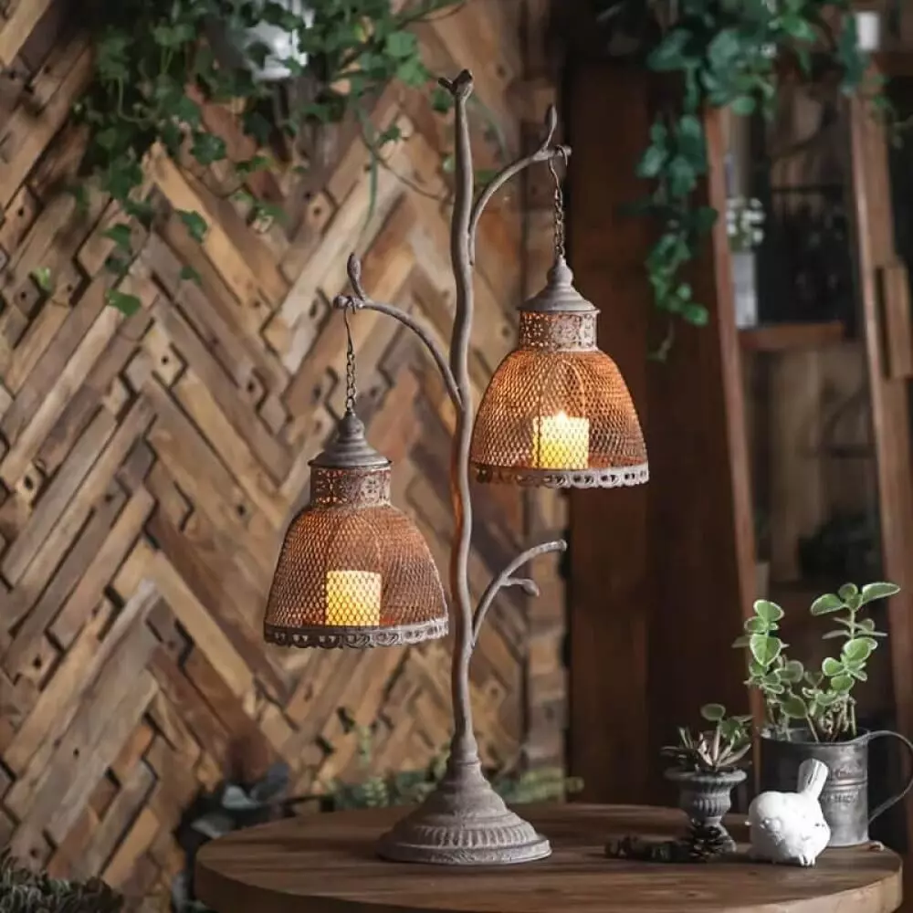أضف لمسة من السحر الكلاسيكي والأناقة العتيقة إلى ديكور منزلك مع هذا الحامل المميز للشموع. يأتي بتصميم قفصين معدنيين متدليين من هيكل حديدي يشبه غصن الشجرة، بتفاصيل دقيقة وتشطيب ريفي عتيق يضفي على المكان دفء وهدوء لا مثيل له.