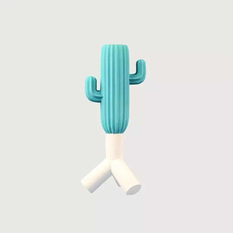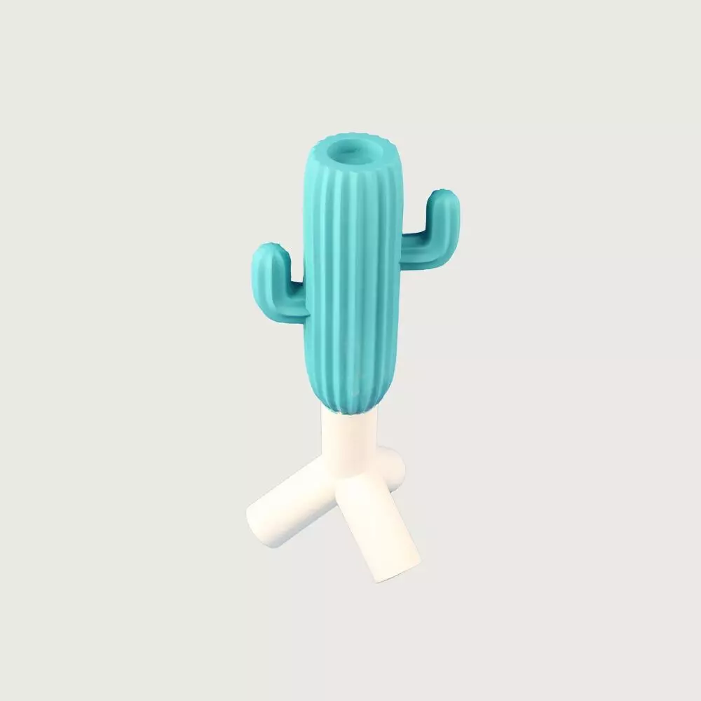 شمعدان سيراميك على شكل صبارة - ازرق وابيض