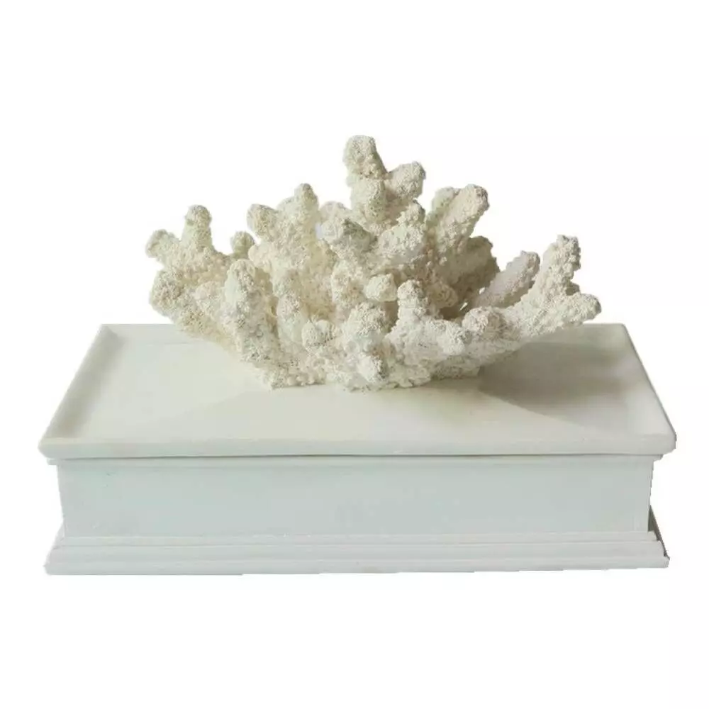 • يتميز الصندوق بتمثال المرجان الذي يعتليه ويعطيه لمسة أنيقة تضفي فخامة إلى أي مساحة معيشية في منزلك.