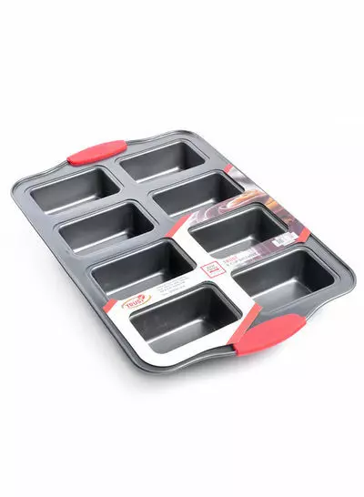 اصنعي قطع البراوني المثالية بكل سهولة مع صينية البراوني المصممة بـ8 قوالب مفرغة، بلون أسود أنيق مع لمسات حمراء جذابة.