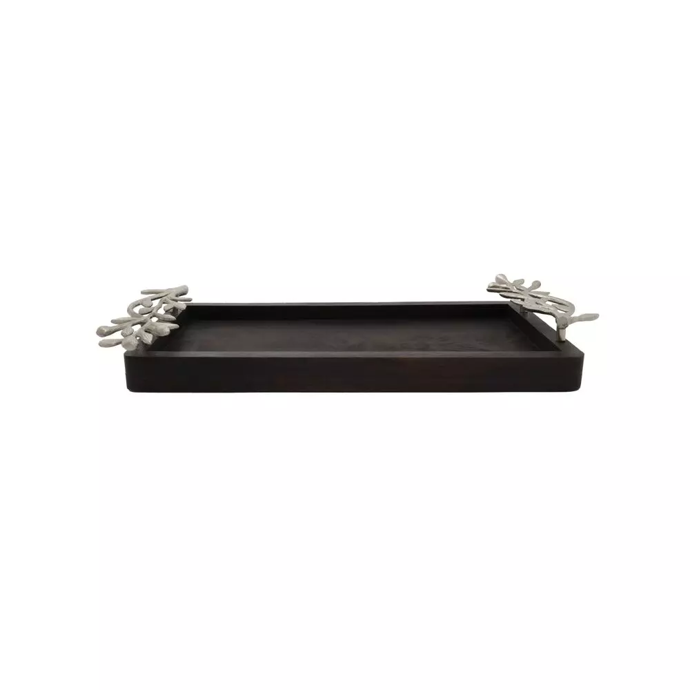 صينية تقديم مصنوعة من الخشب باللون الأسود, تستخدم لتقديم الأطعمة والمشروبات بشكل جميل ومرتب, توفر مظهرًا أنيقًا ومميزًا للطاولة، كما أنها متينة وقوية ويمكن أن تستخدم لفترة طويلة.