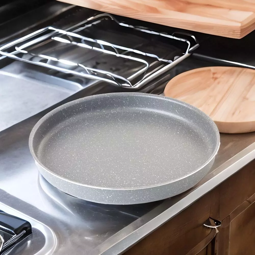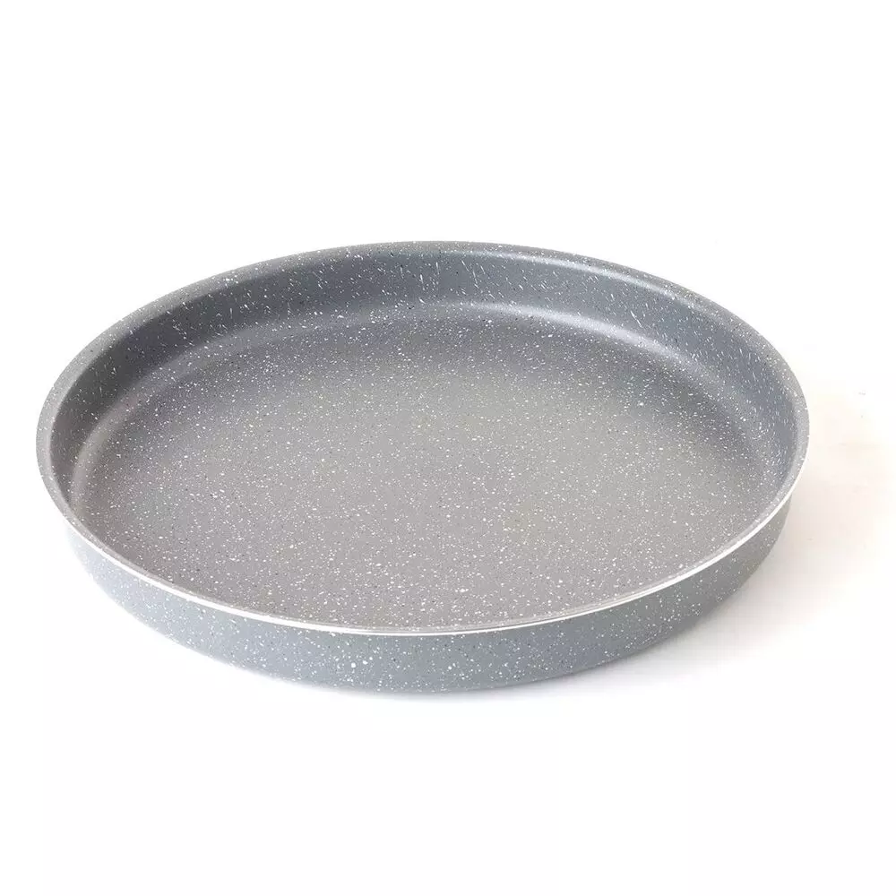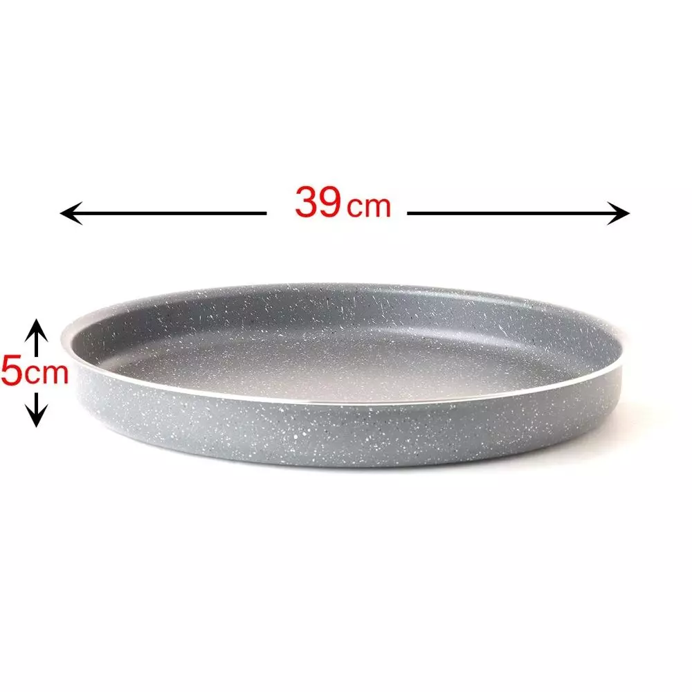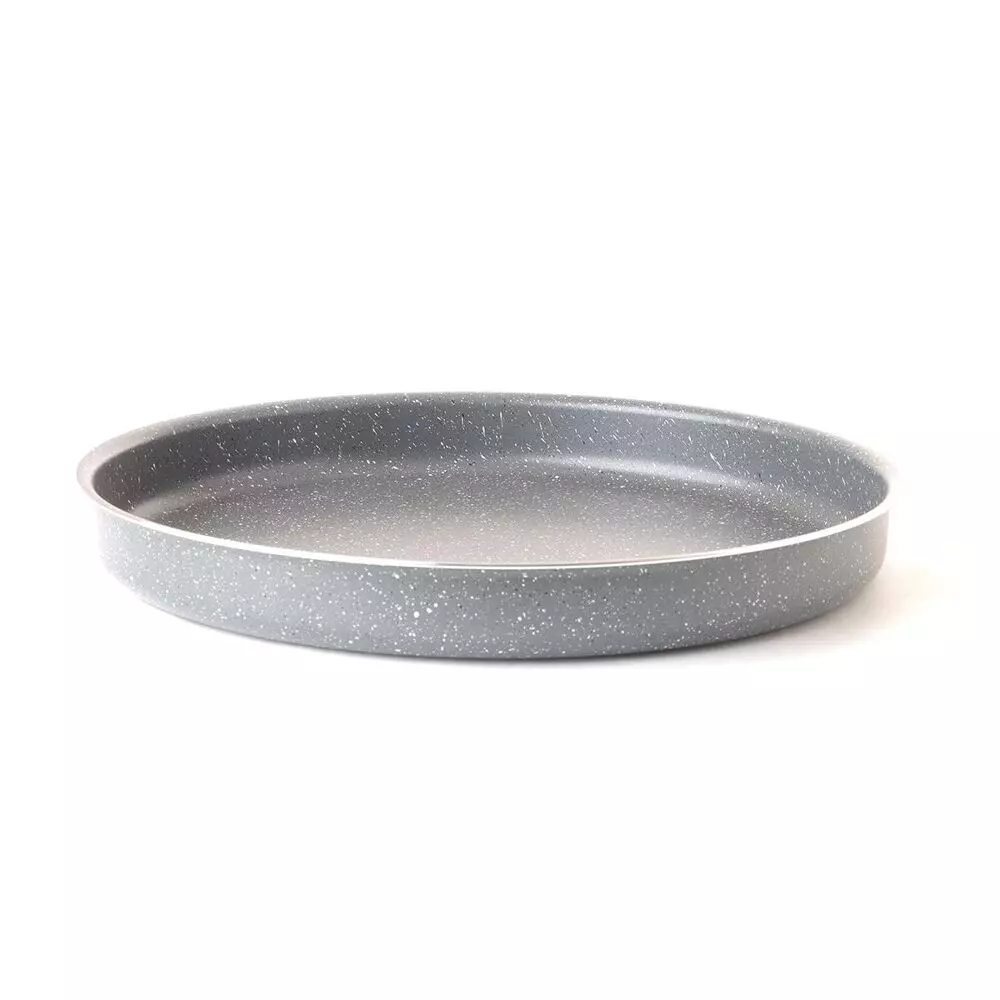 صينية فرن جرانيت رصاصي - 39 سم . مصنوعة من الجرانيت الصحي المقاوم للحرارة العالية والذي يساعد في نشر الحرارة بشكل متساوٍ للغاية وتقليل استهلاك الطاقة ، مما يجعل من السهل ضبط درجة الحرارة حتى لا يحترق أو يلتصق الطعام.