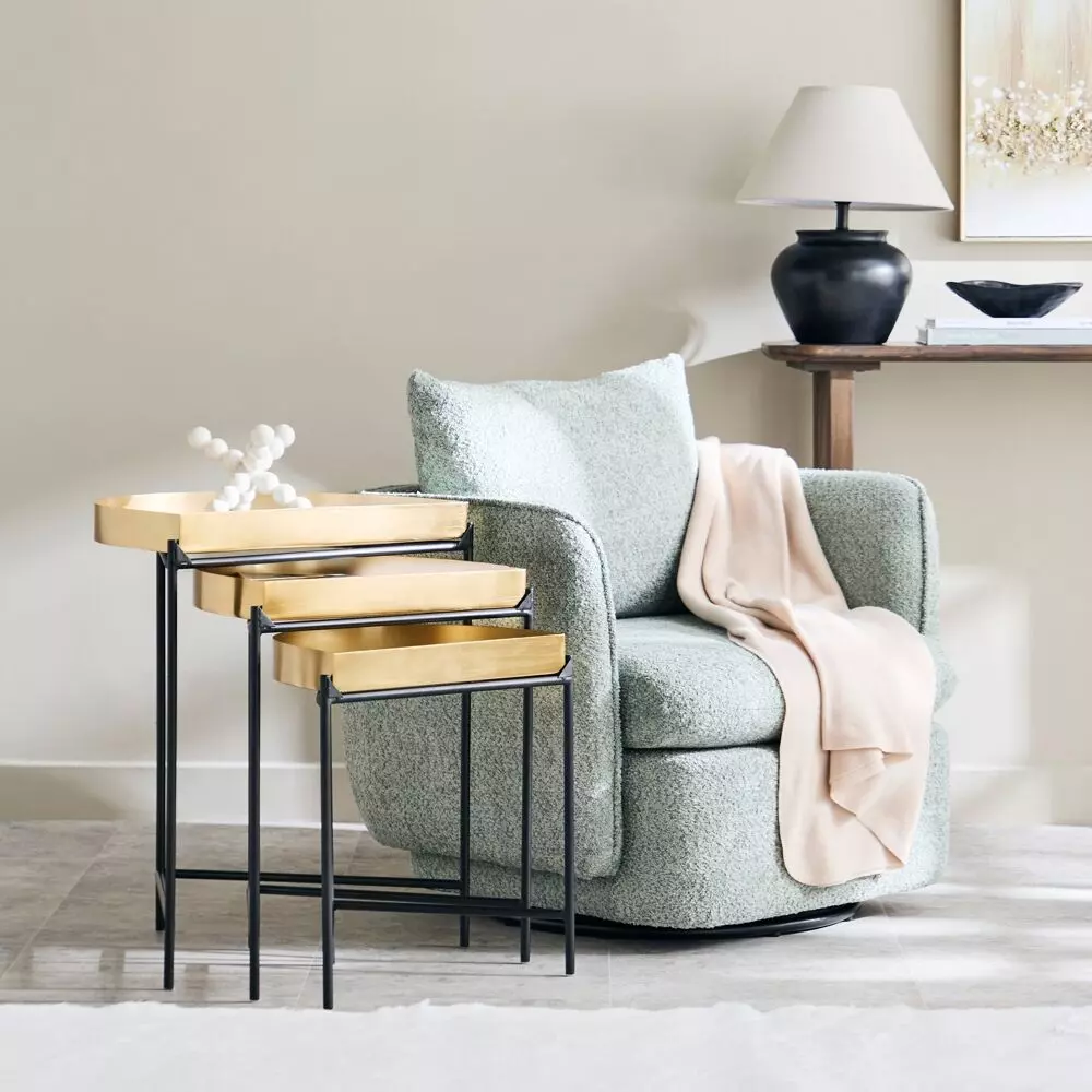 اختاري الأناقة والعملية لأثاث غرفة معيشتك بالحصول على هذه الطاولات المتداخلة الرائعة، تتكون من ثلاث طاولات متداخلة مثالية لغرفة المعيشة، بتشطيب معدني مطلي وهيكل معدني متين، مقاومة للخدش والبقع، مما يضمن بقائها في حالة ممتازة. يسهل تنظيفها بقطعة قماش مبللة، سهلة التجميع.تُستخدم صور المنتج المرفقة في أعراض التوضيح والتمثيل فقط.قد يختلف لون المنتج قليلاً بسبب مصادر الإضاءة الفوتوغرافية أو إعدادات الشاشة/شاشتك.