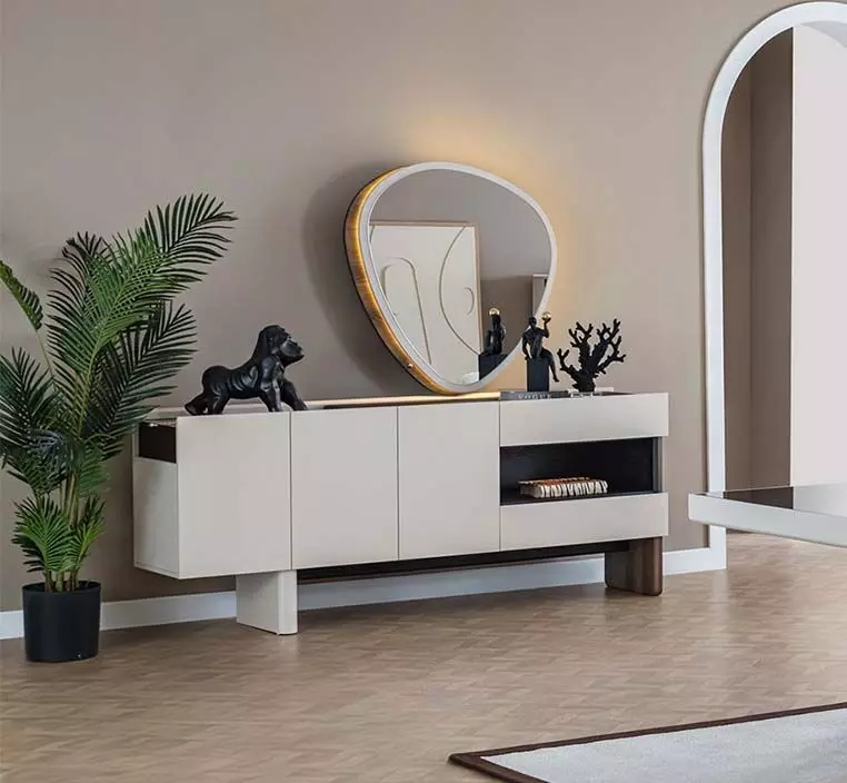 | يتضمن الطقم | طاولة بوفية مع مرآه |