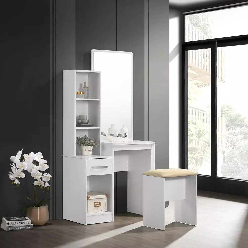 | يتضمن الطقم | 1 طاولة تزيين مع مرآة 1 مقعد فقط |