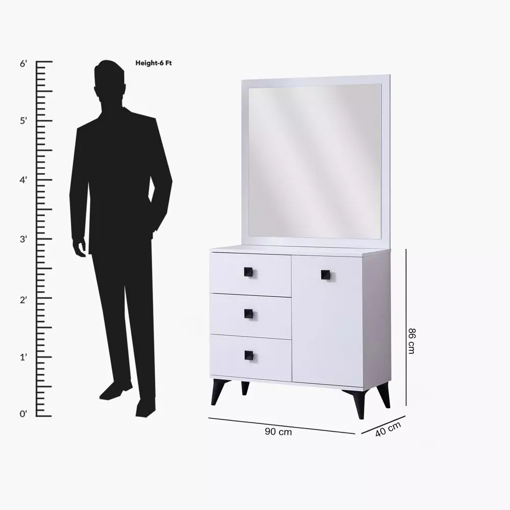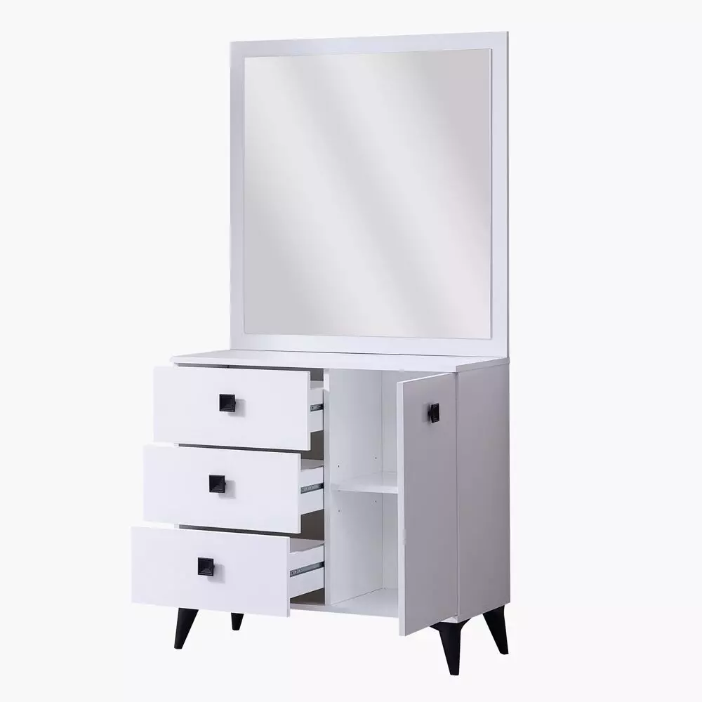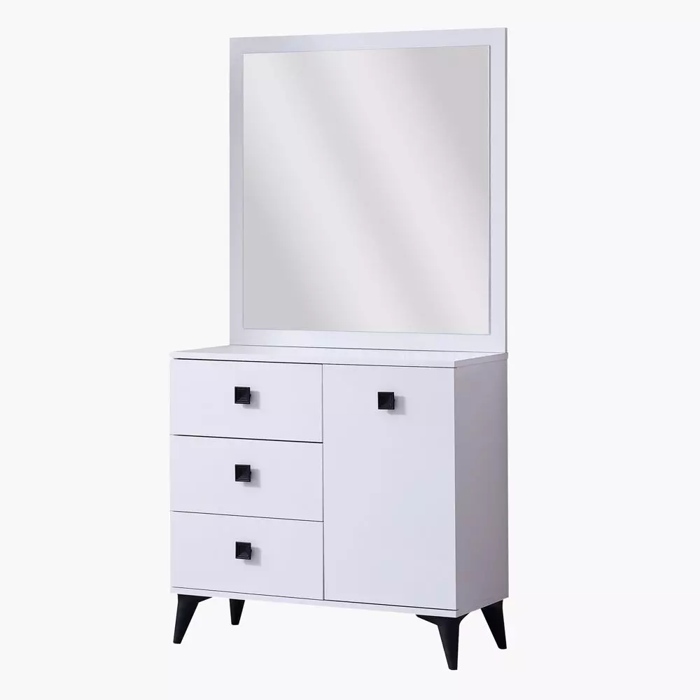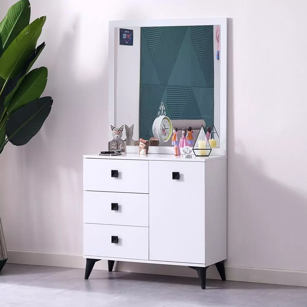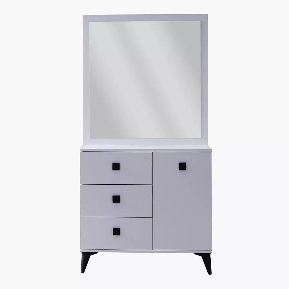 يتضمن الطقم 1 طاولة تزيين 3 درج وباب 1 مرآة فقط