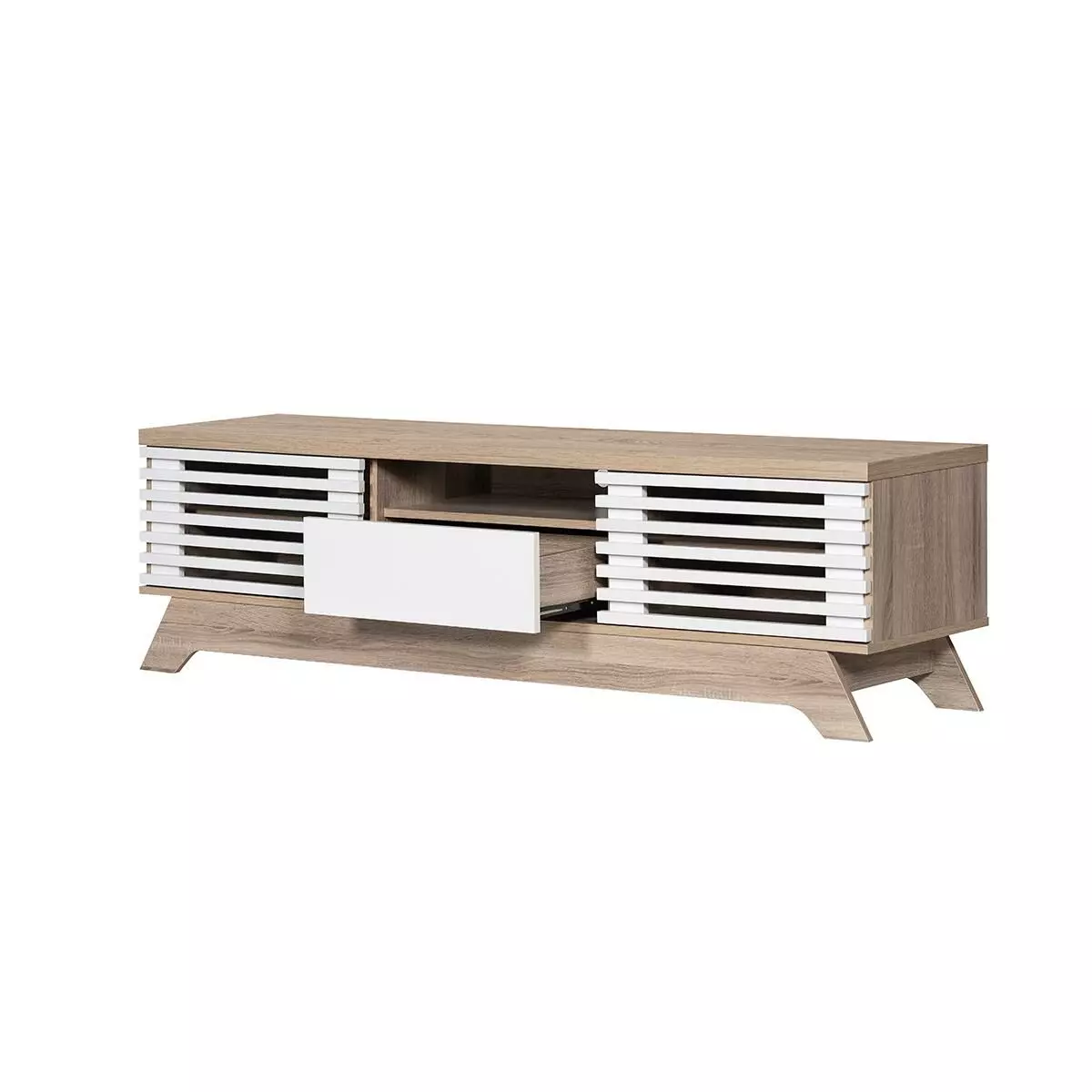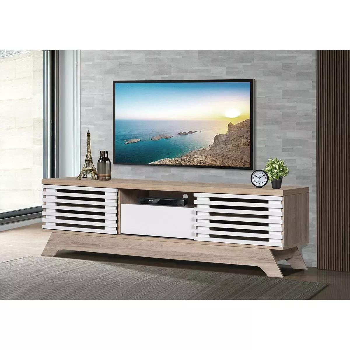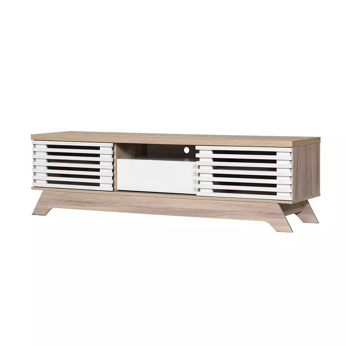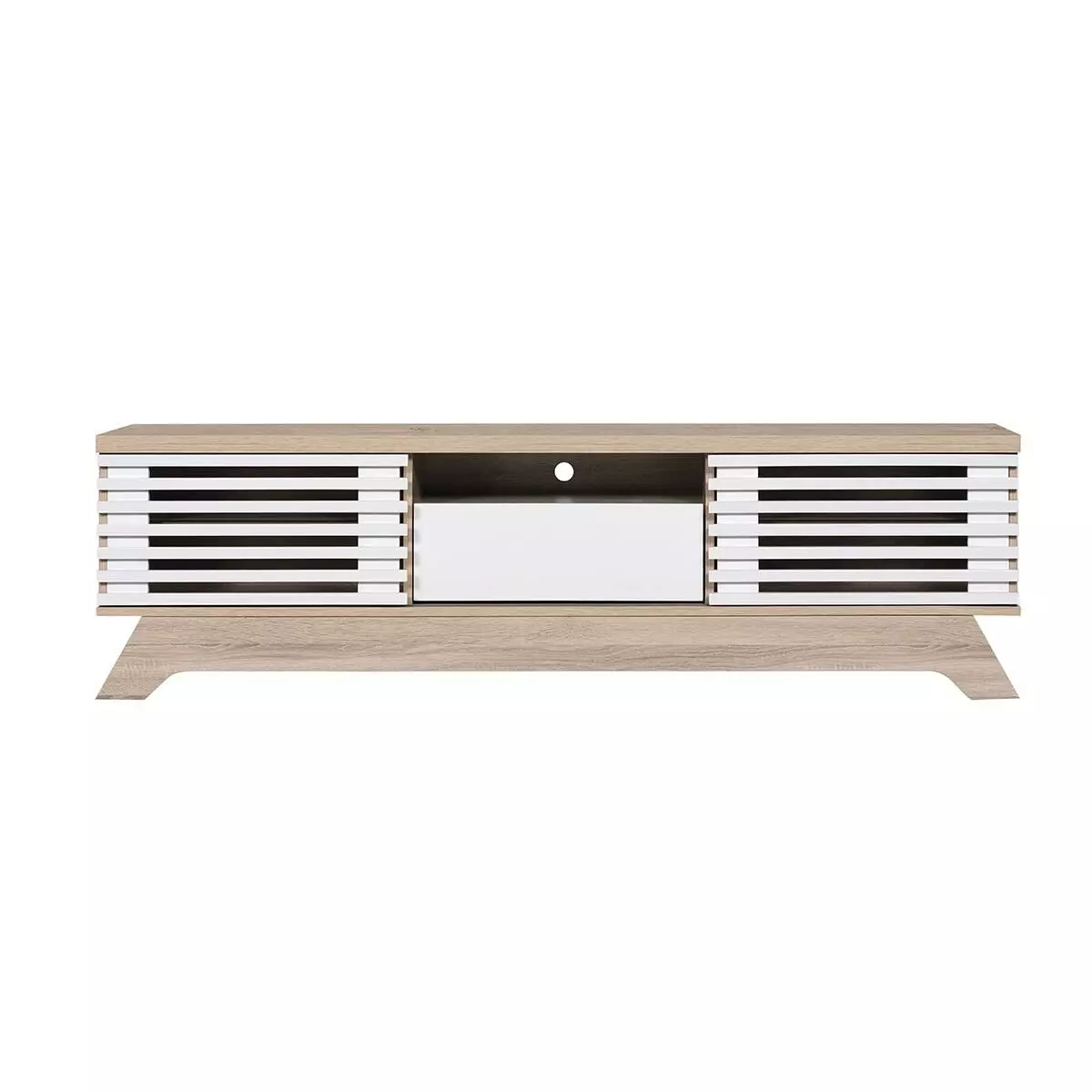 لأن طاولة التلفاز تلعب دور المركز الأساسي الذي يعتمد عليه ترتيب الأثاث في غرفة المعيشة اخترنا لك أحدث طاولات التلفاز بتصاميم حديثة فاخرة تبرز جمال أي مساحة. طاولة تلفاز أماري - 160 سم, لون خشبي فاتح وأبيض تشكل إضافة مميزة لديكورك بفضل تصميمها والوانها المتناغمة مع تشكيلات متنوعة من الأثاث فضلا عن كونها مصنعة من مواد عالية الجودة مختارة بعناية.