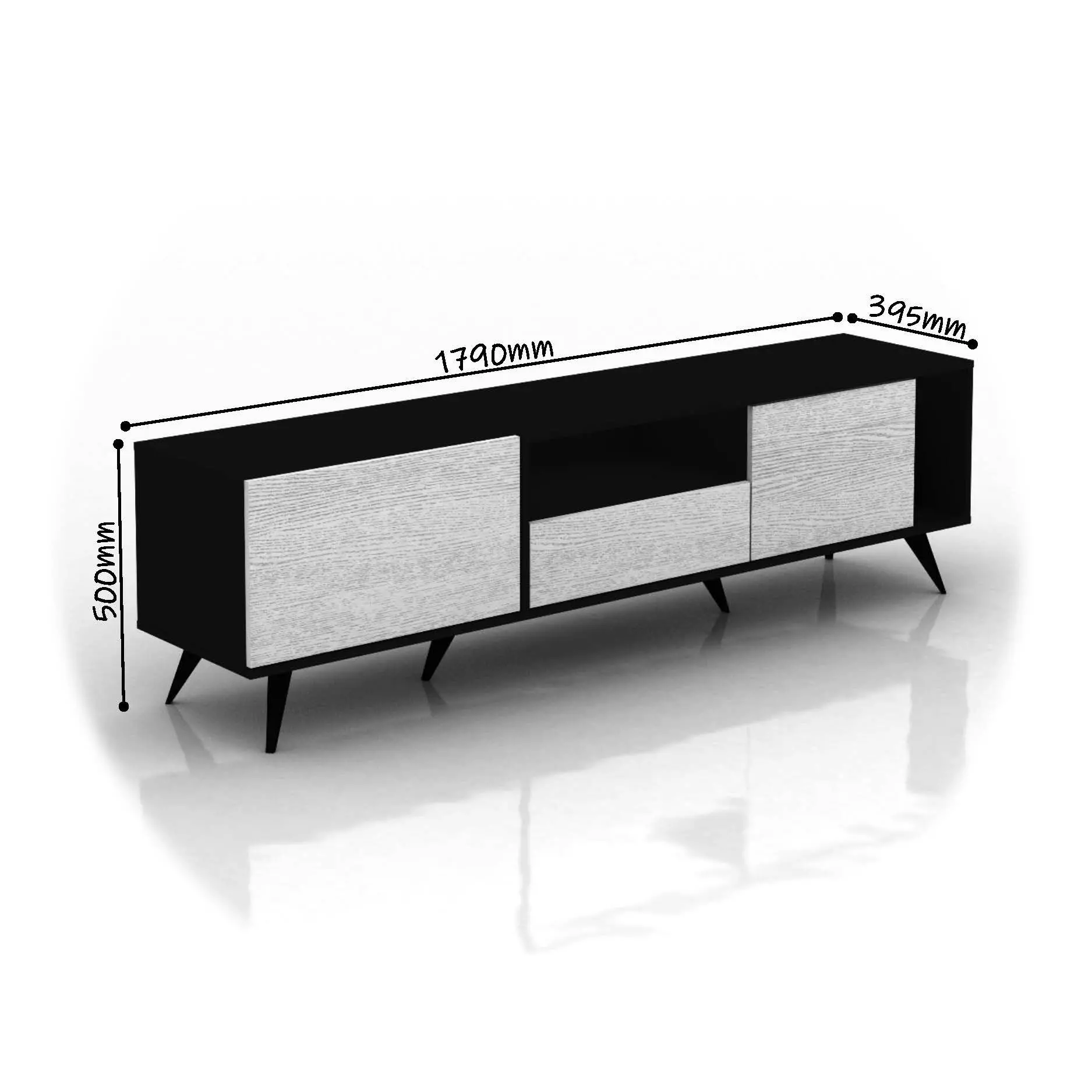 | أبعاد طاولة التلفزيون | العرض: 179 سم، العمق: 39.5 سم، الارتفاع: 50 سم |