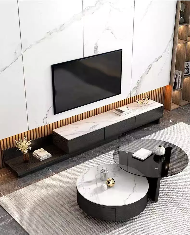 | أبعاد طاولة التلفزيون | قياسات طاولة التلفزيون: الطول: 180 سم، الارتفاع: 30 سم العمق: 39 سم قياسات الطاولة الجانبية: العمق: 38 سم، الارتفاع: 10 سم |