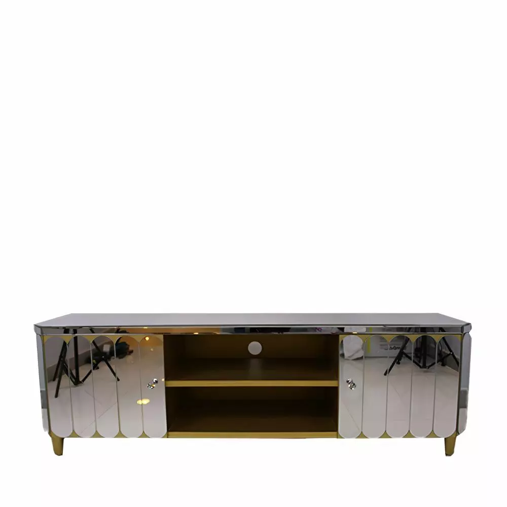 طاولة تلفزيون بيسان - ابيض وذهبي